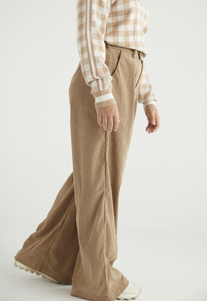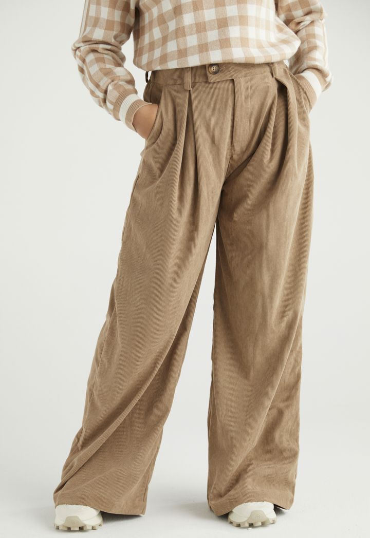 Style this pair of relaxed fit ribbed trousers with your solid tops for an iconic look.