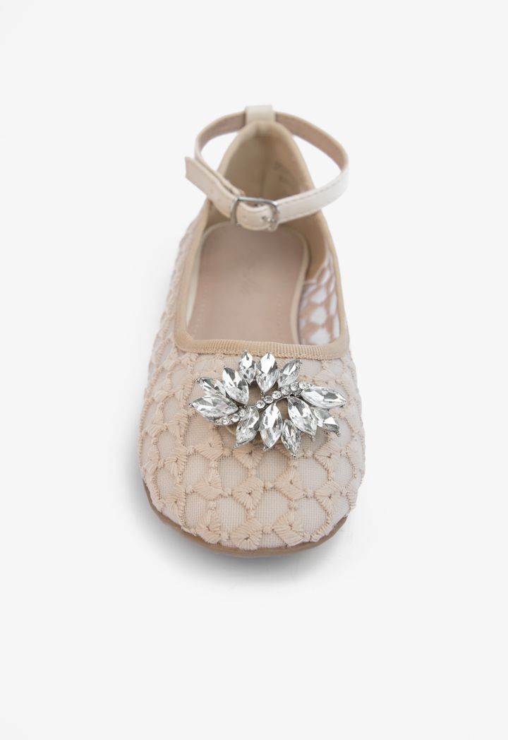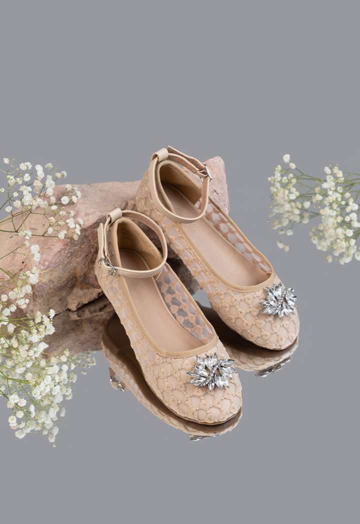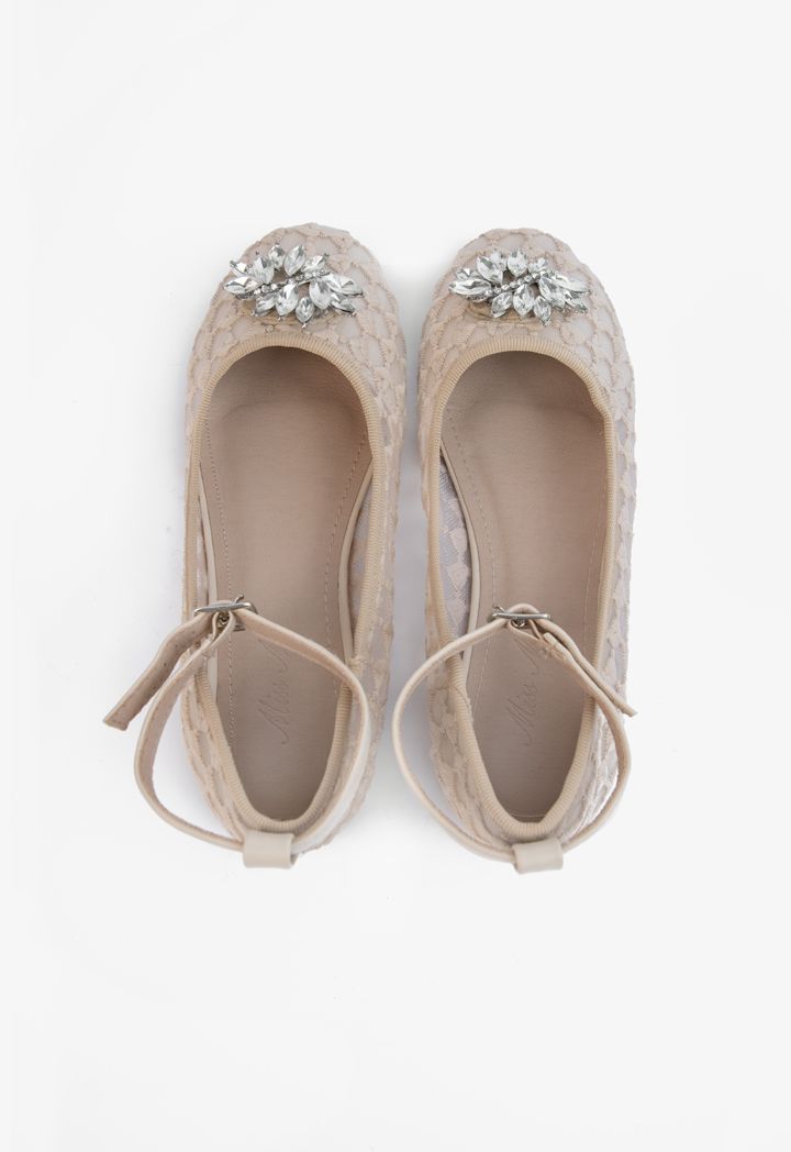 Rhinestones Embellished Mesh Flat Strap Shoes |