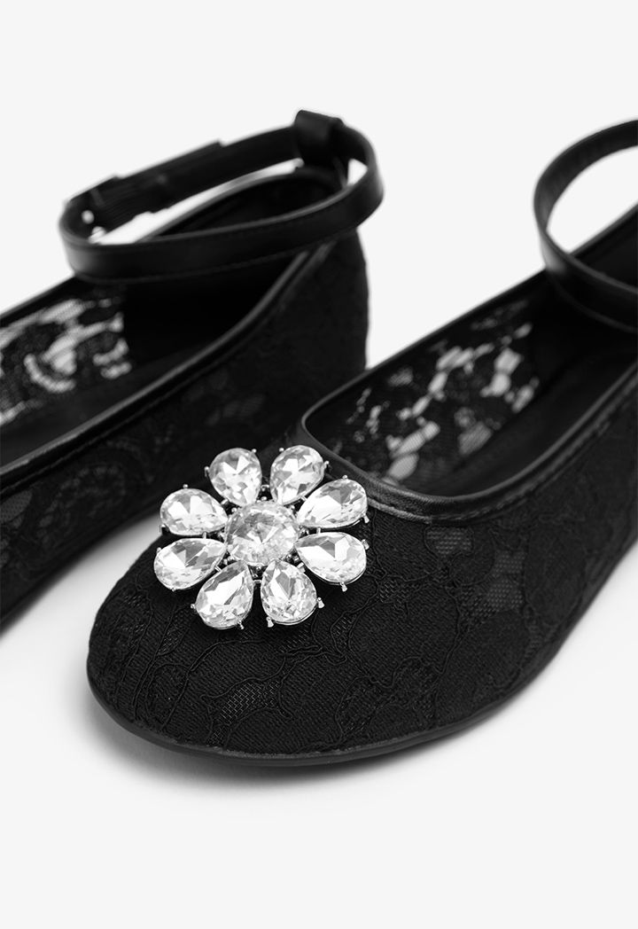 An elegant pair of flat strap shoes that will make the perfect addition to her shoe collection for the semi-formal to formal events that you take her to.