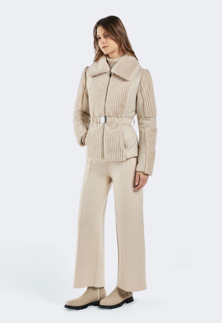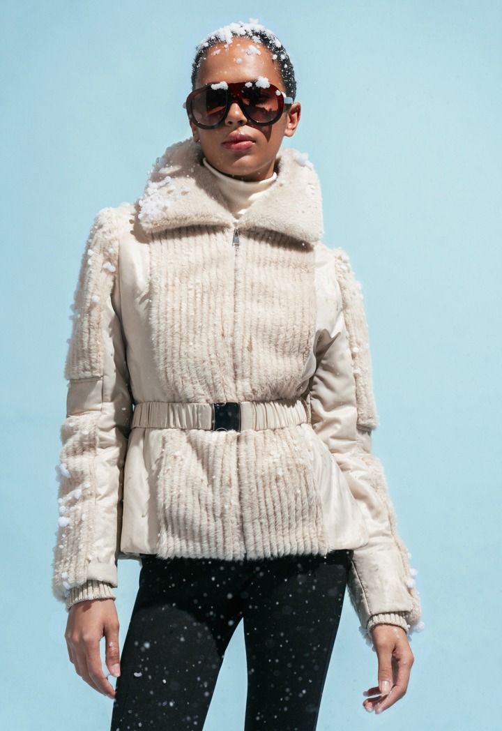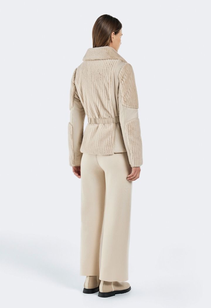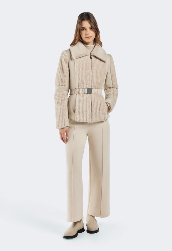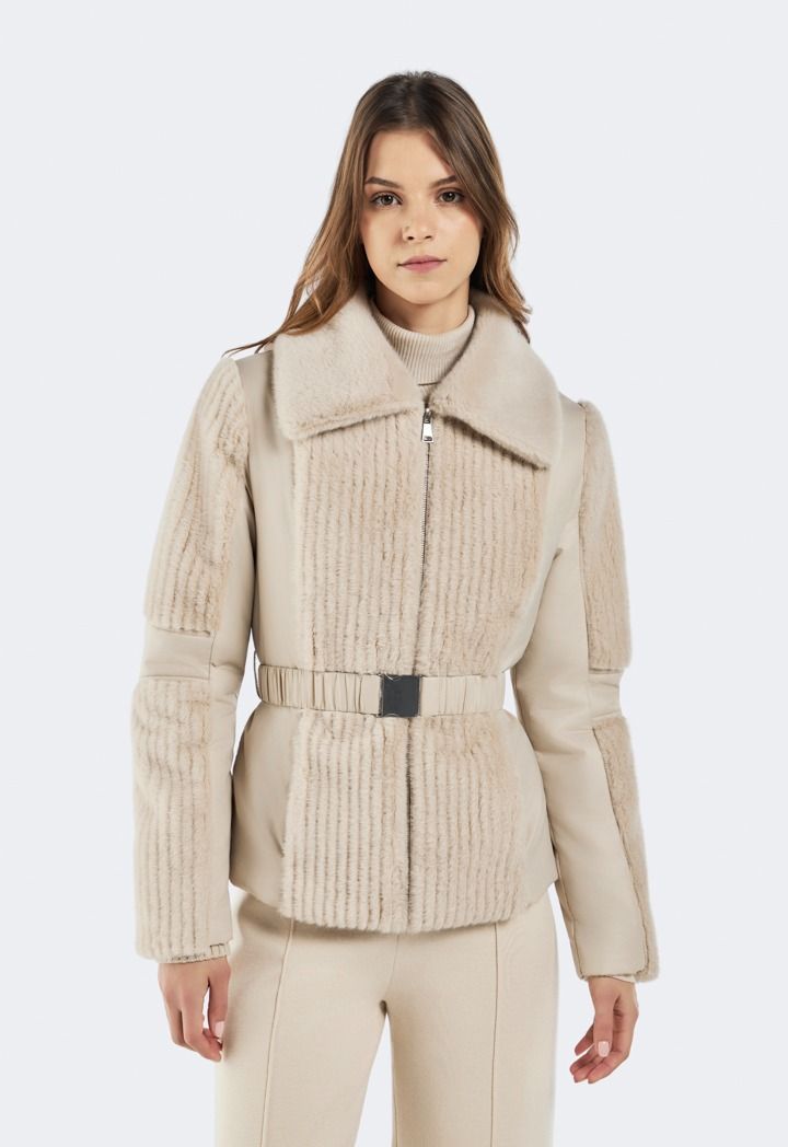 Design: Ribbed Faux Fur, Solid, Attached Lining, Belted
