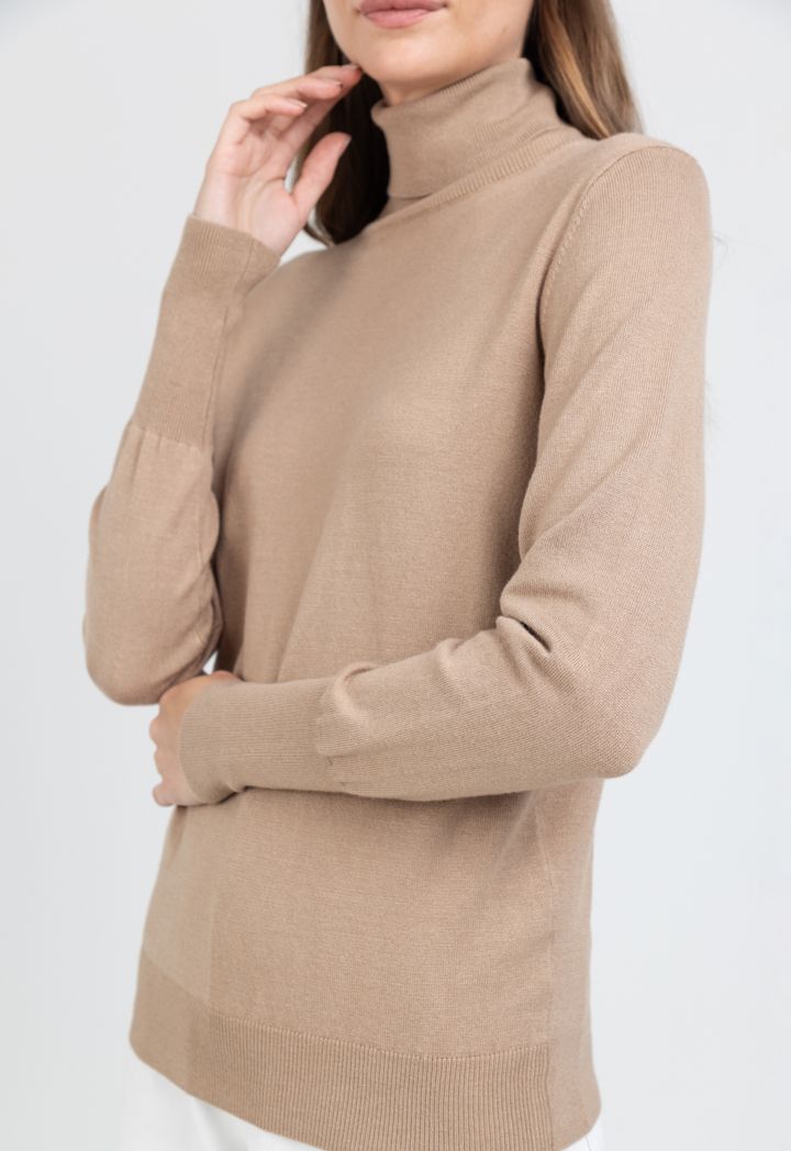 Ribbed Turtle Neckline Slim Fit Solid Basic Top |