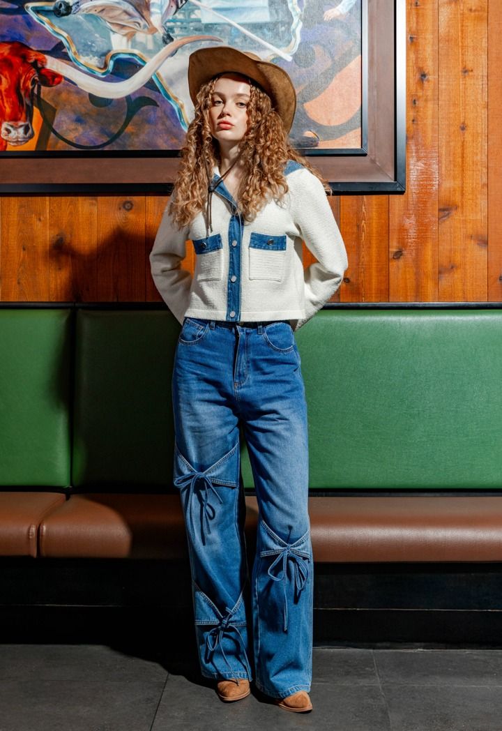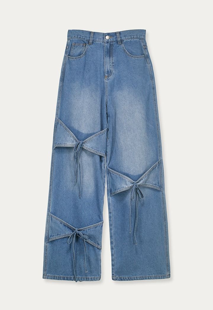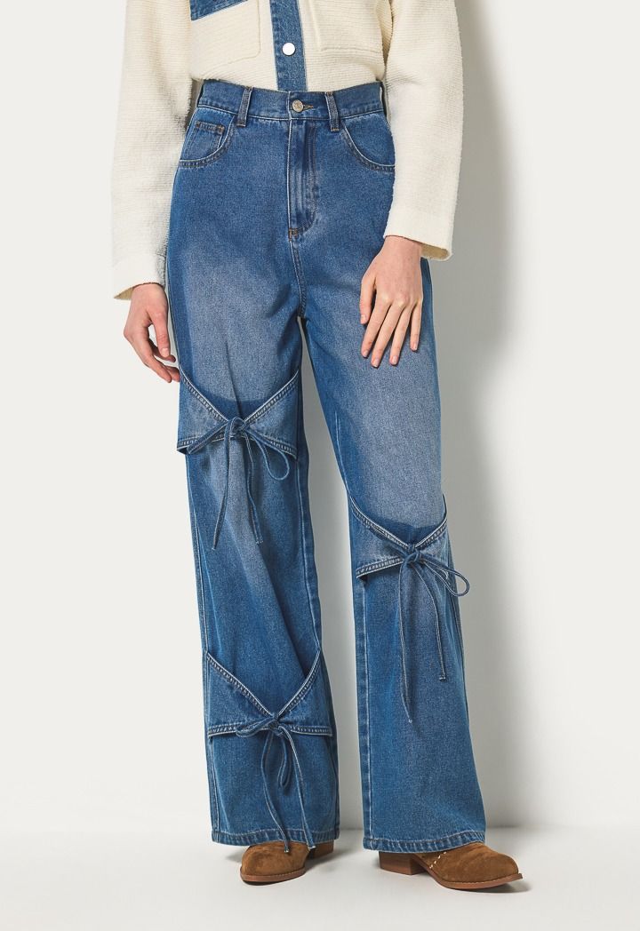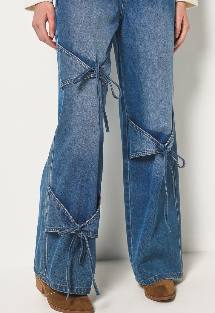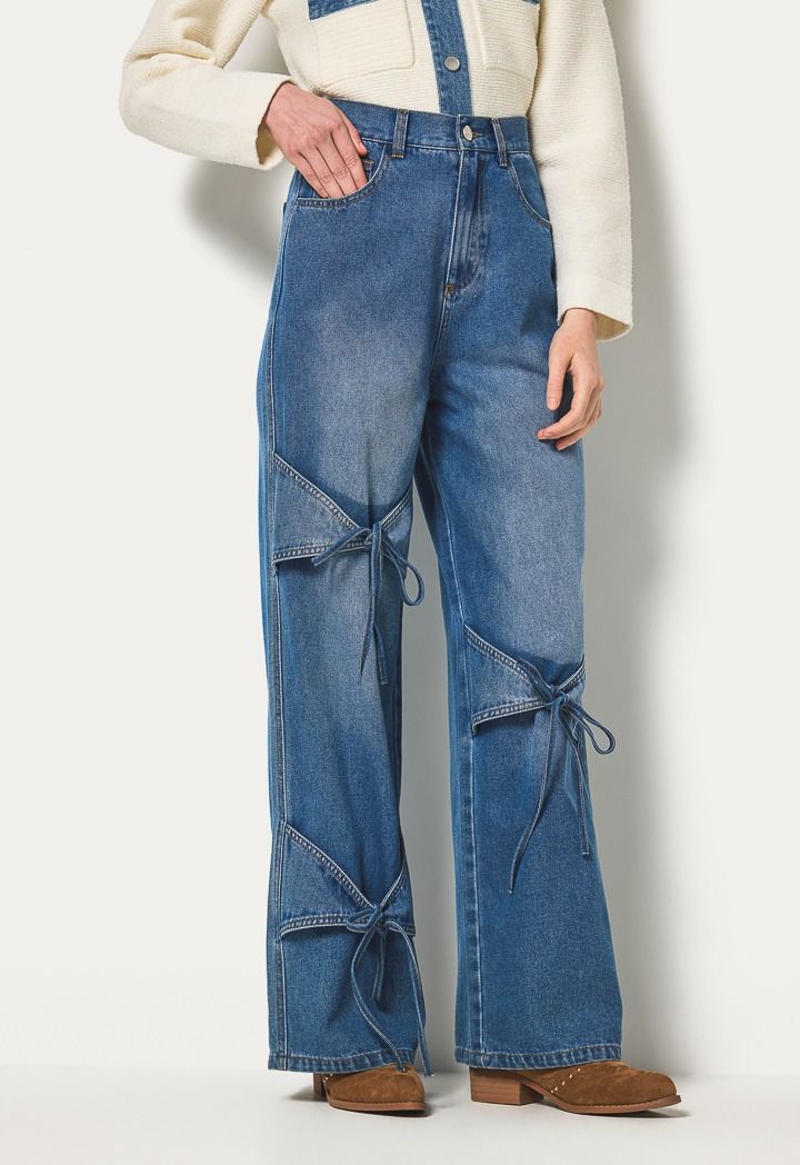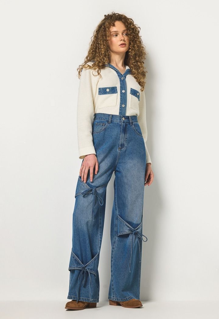 Design: Denim, Pockets, Ribbon Details, Wide Leg