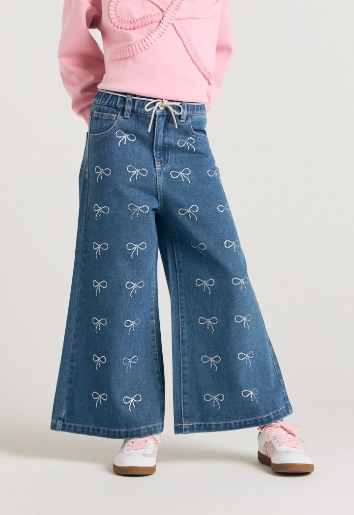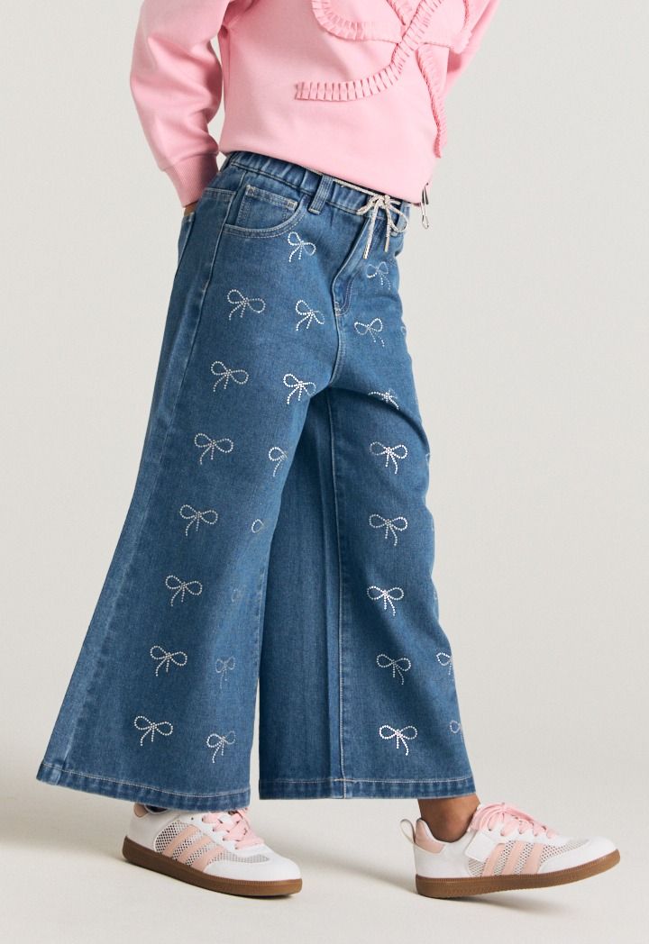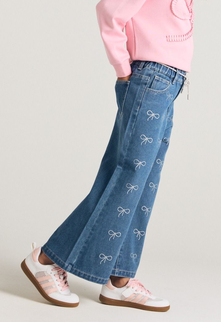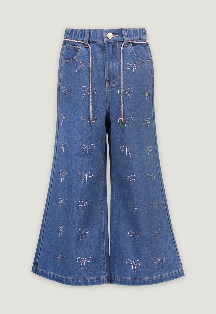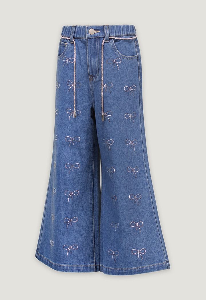 Design : Denim, Embellished, Ribbon, Crystal, Belt, Flared