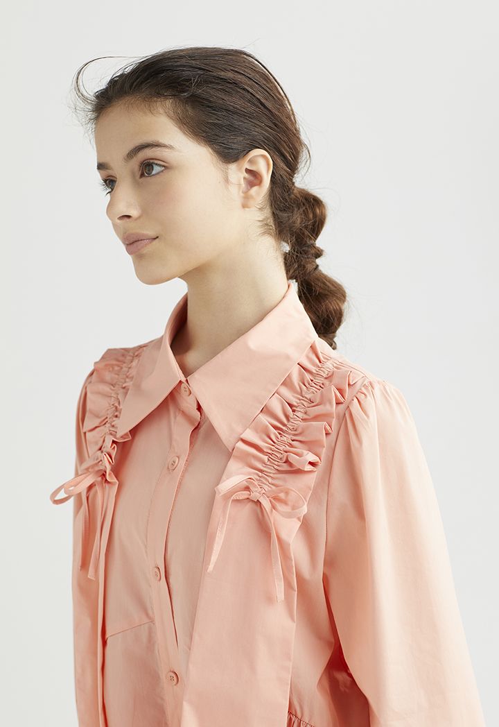 Ribbon Shoulders Shirt Dress |