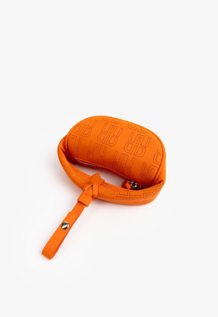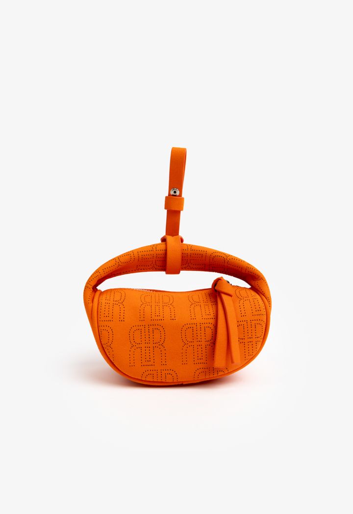 A single handle hand bag with an attractive branded design where the monogram is pierced through the PU leather.