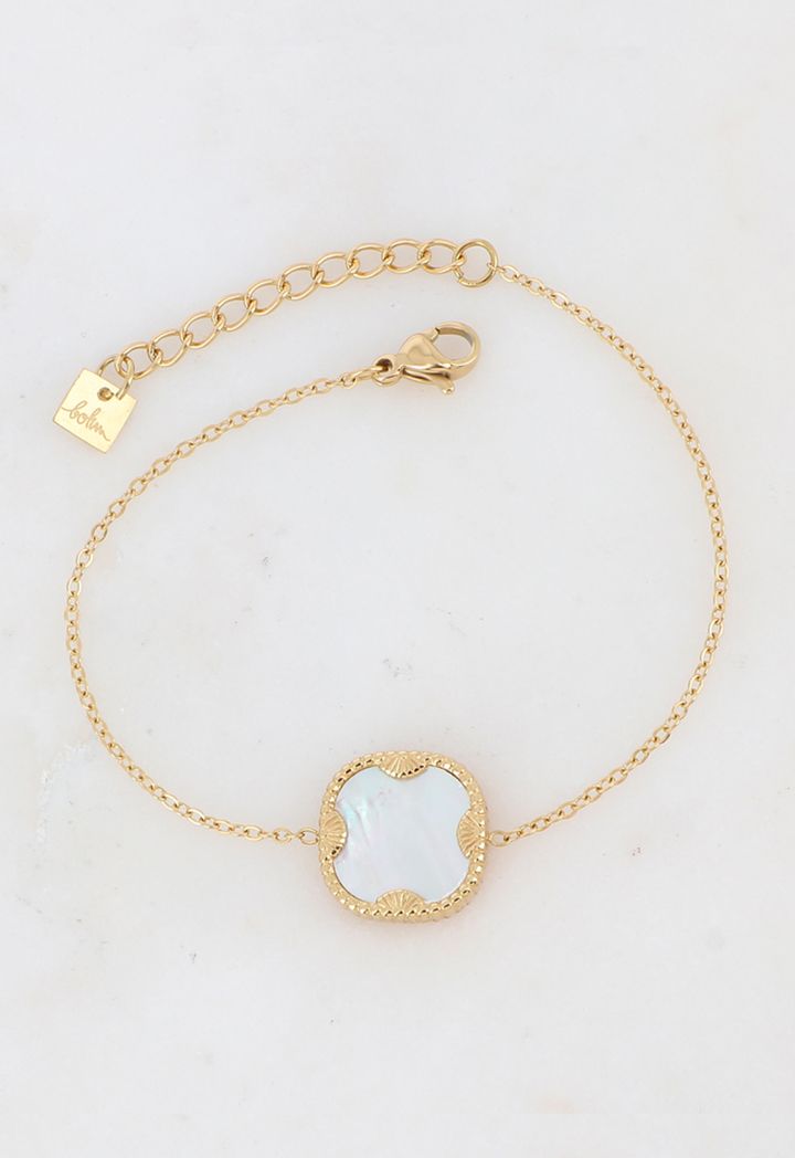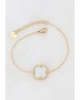 Stainless steel bracelet composed of a rounded square natural stone placed on a ring with 4 shell-shaped claws.