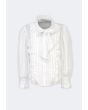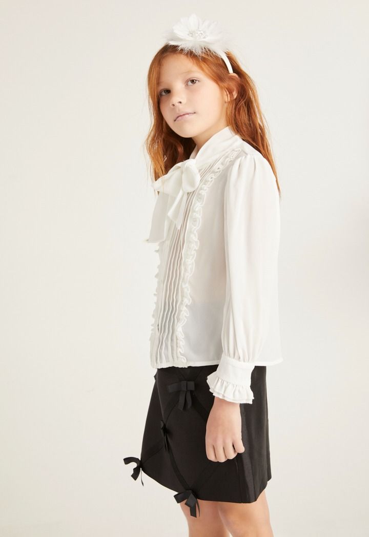 A ruffled chiffon shirt which makes it the go to basic top with a modern twist.
