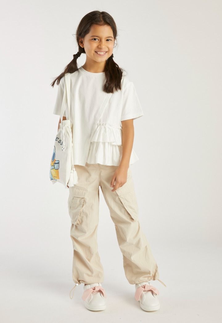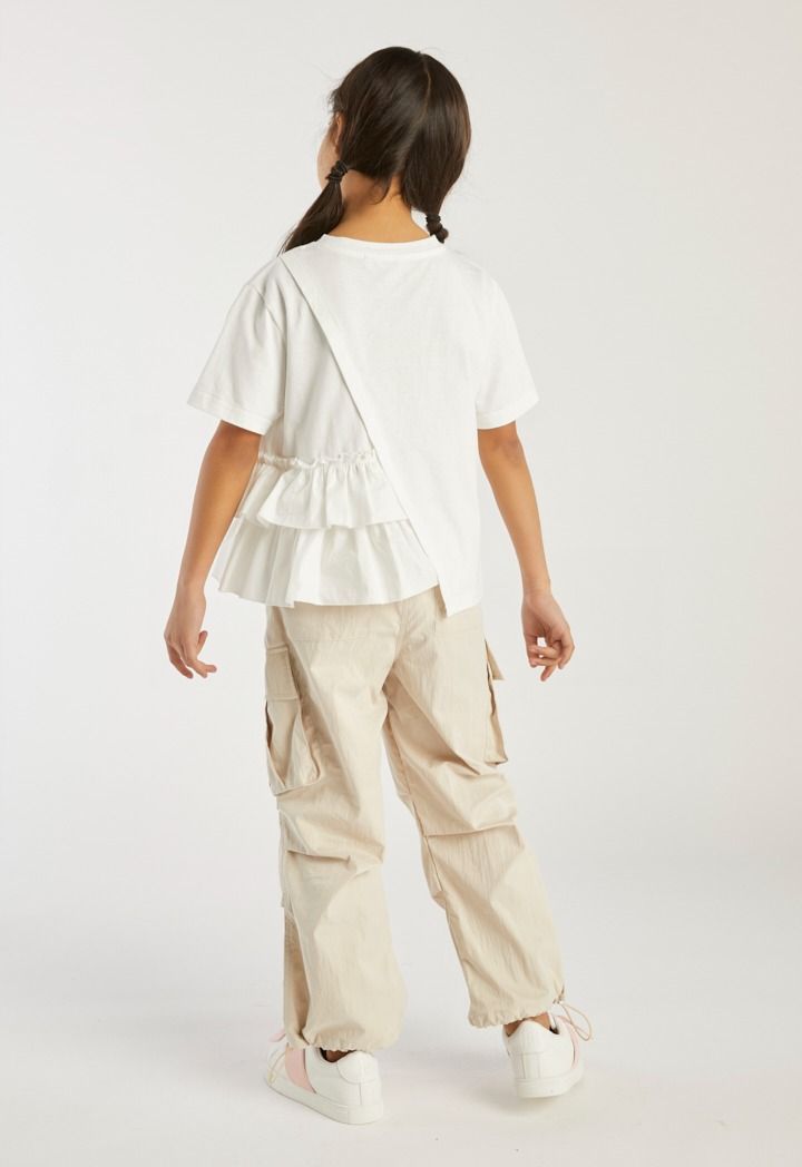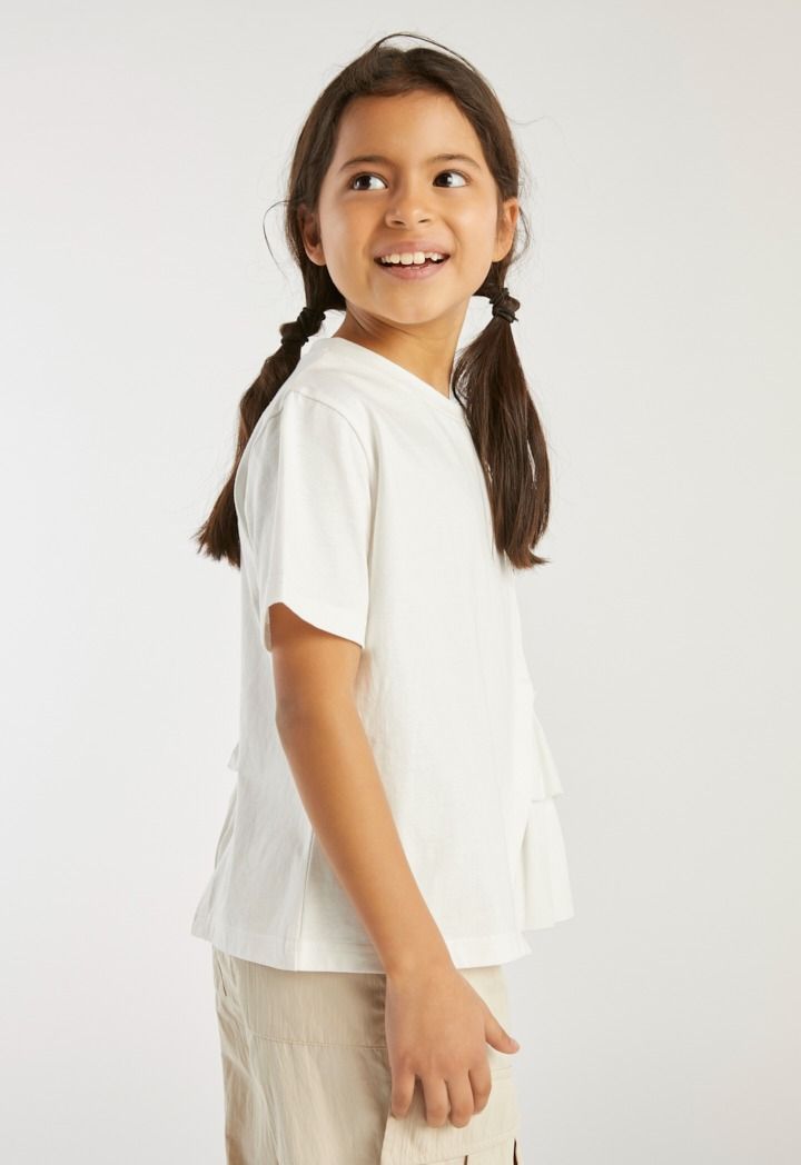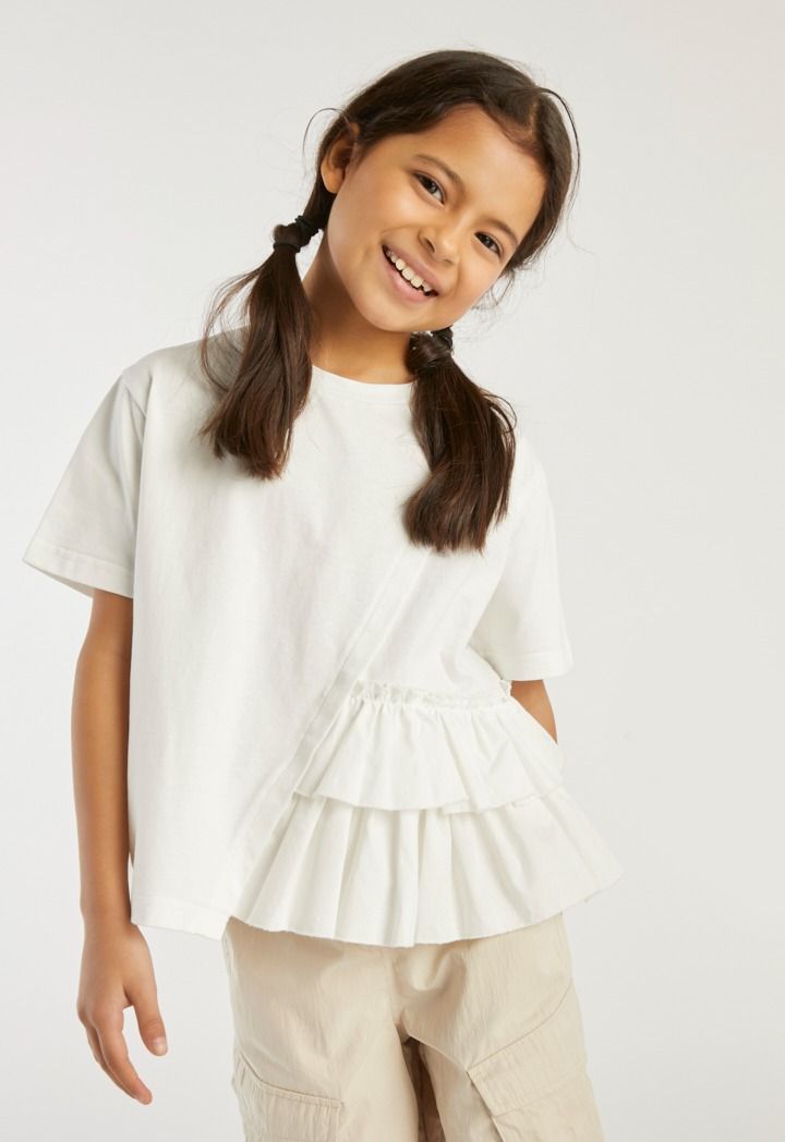 A fun and an easy to style t shirt that features ruffled details.