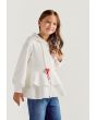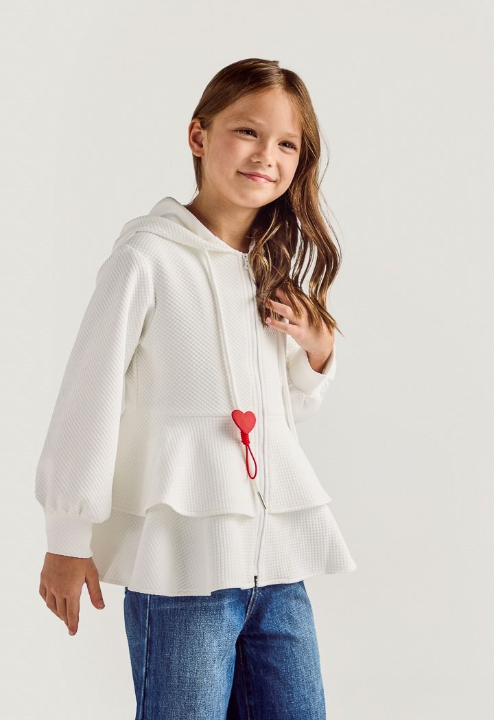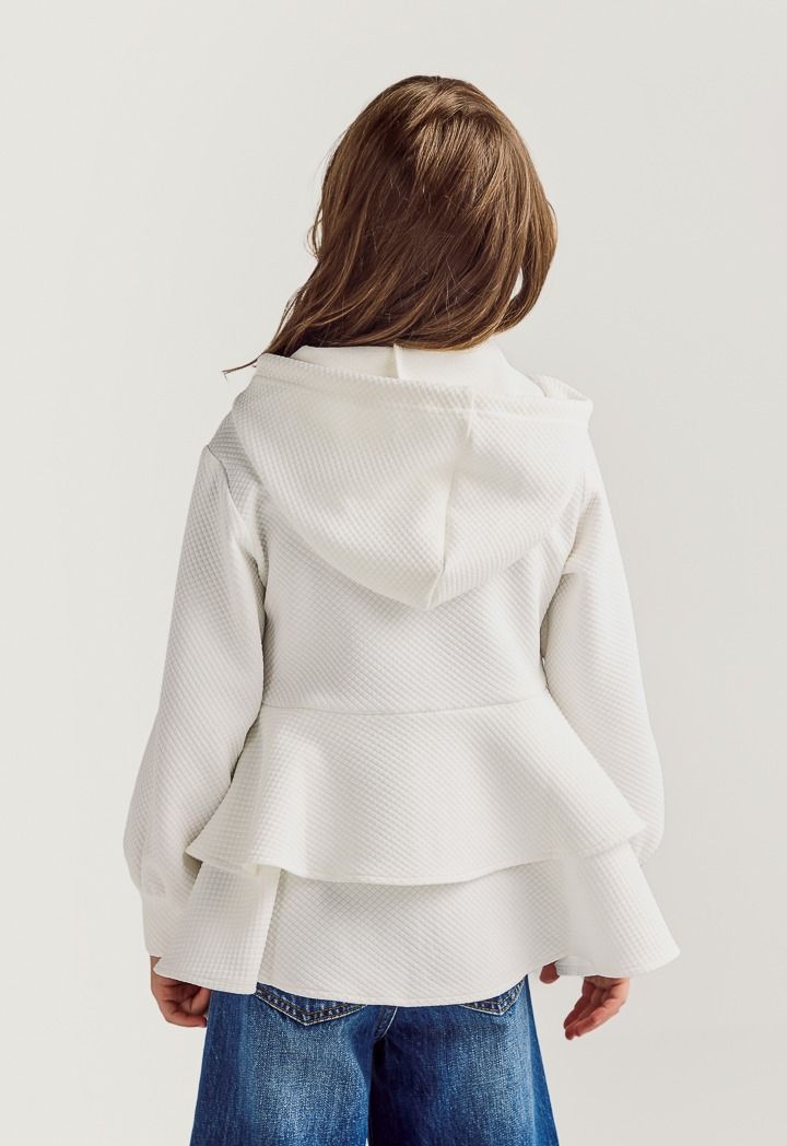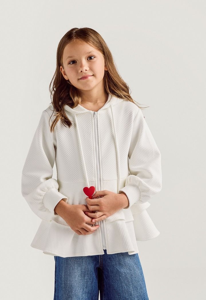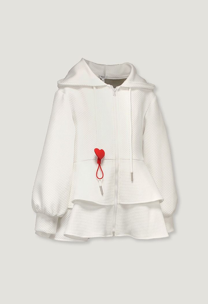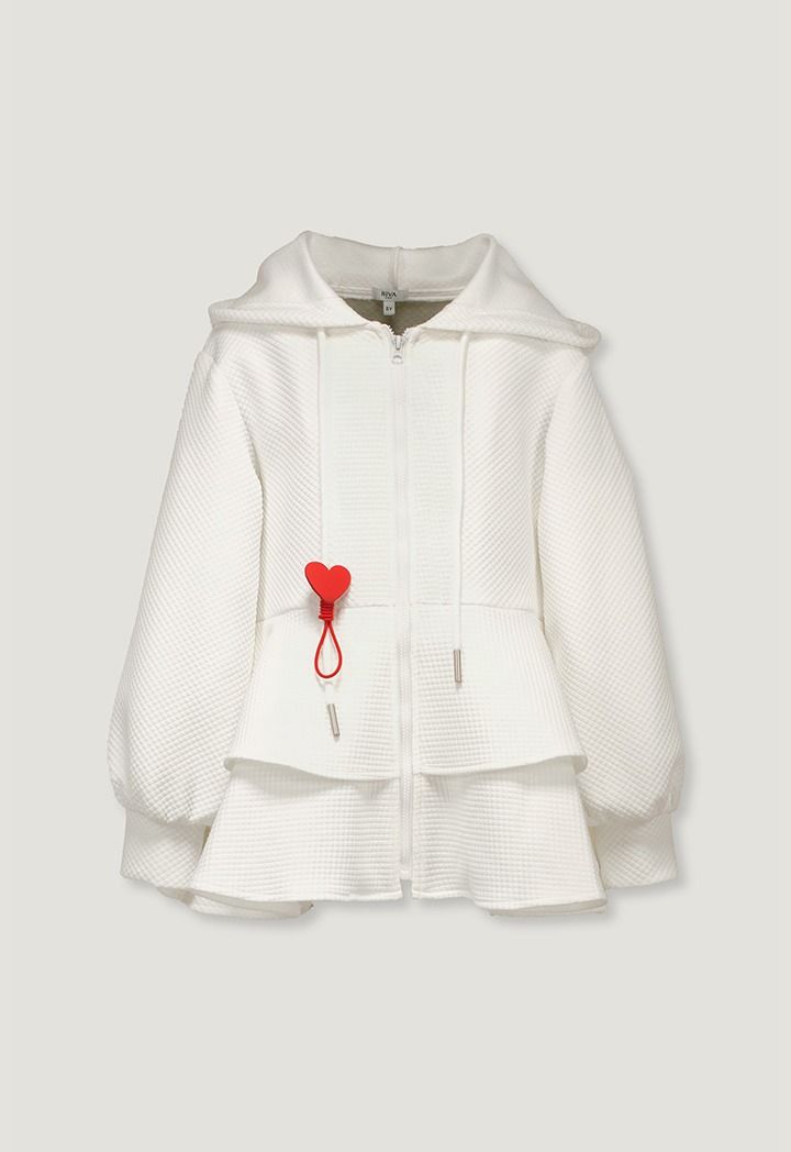 An alluring jacket that features a textured ruffled hems design and a front zipper.