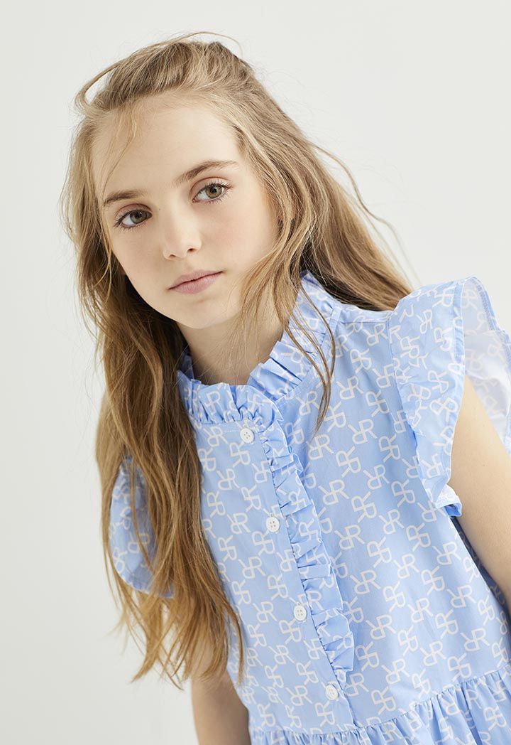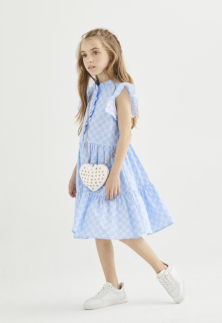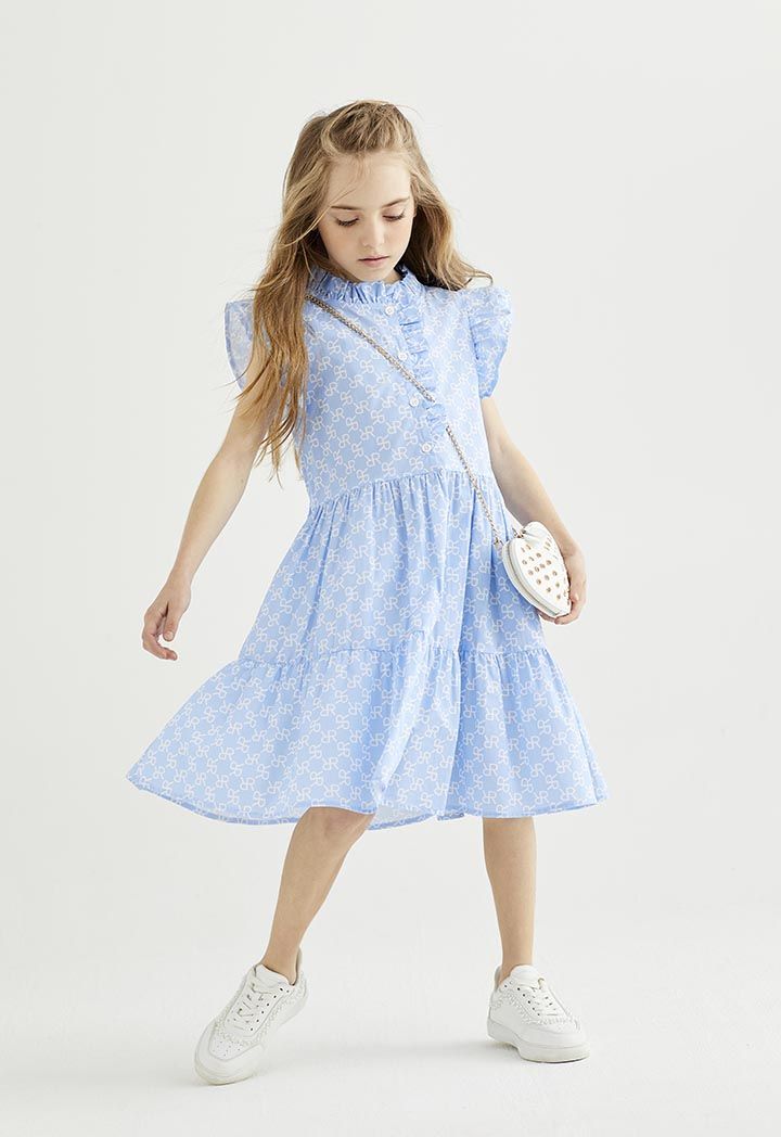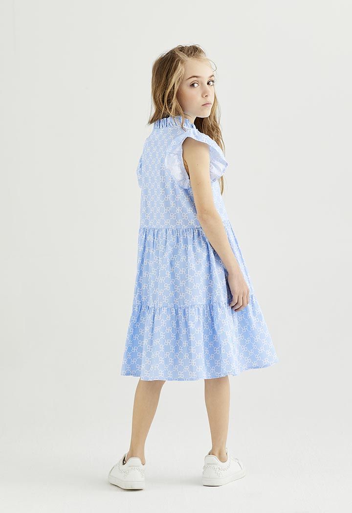 Provide your daughter with this dress, featuring a monogram design with ruffled touches.