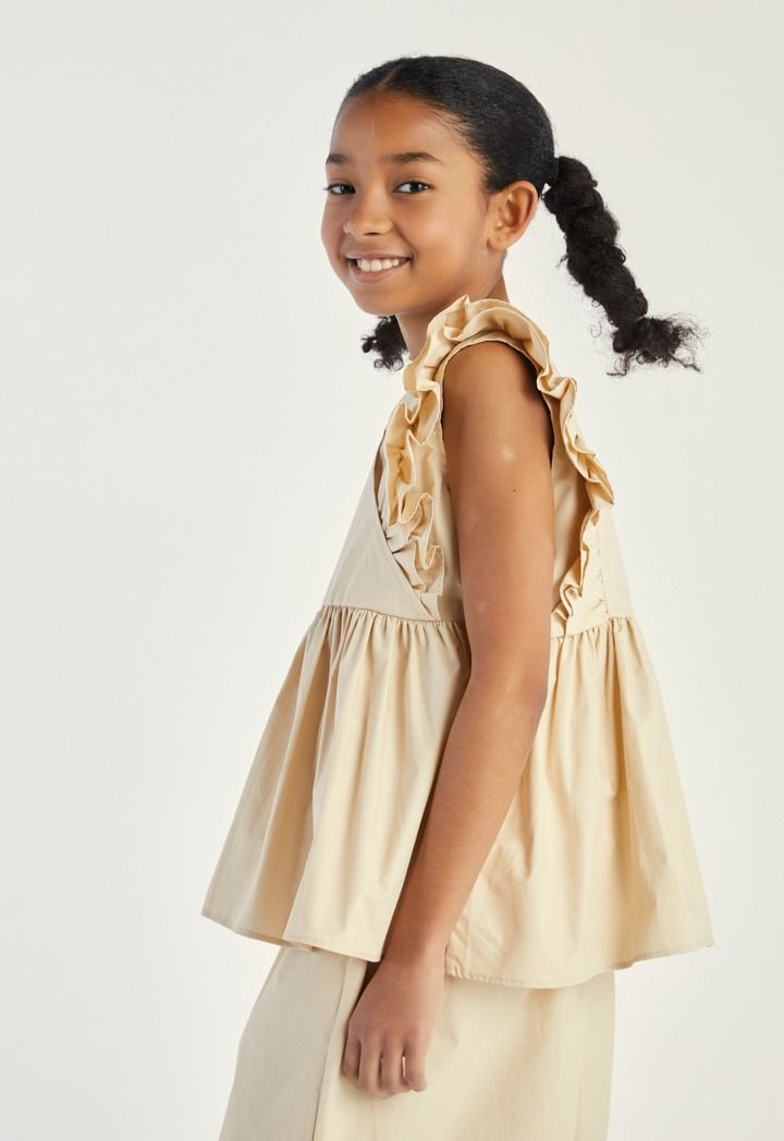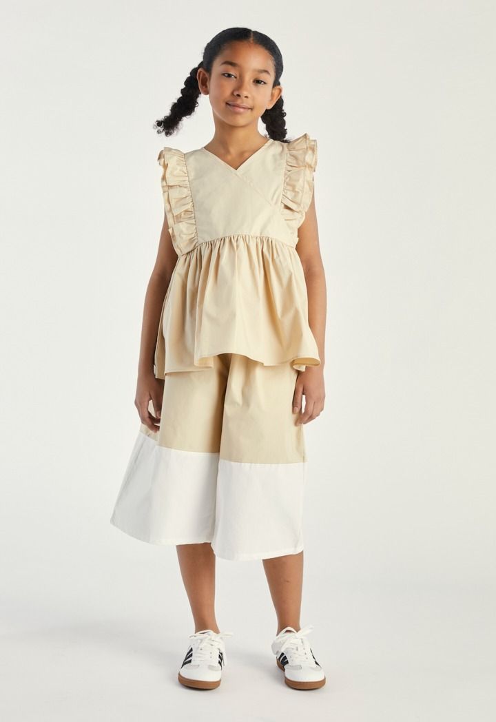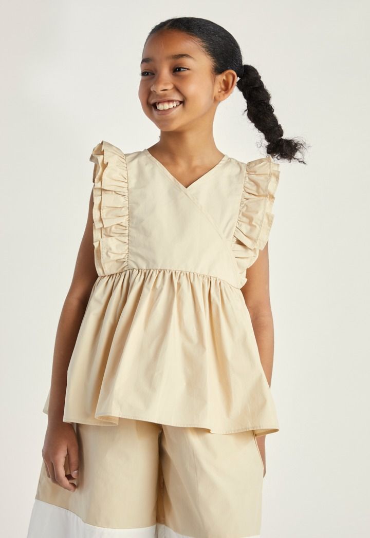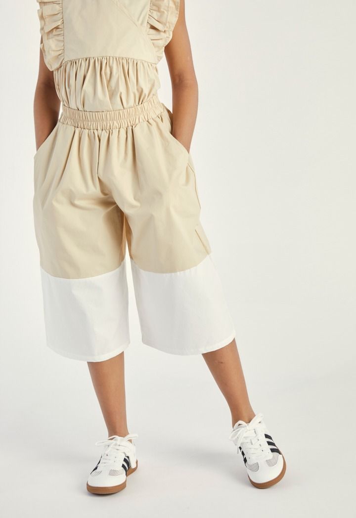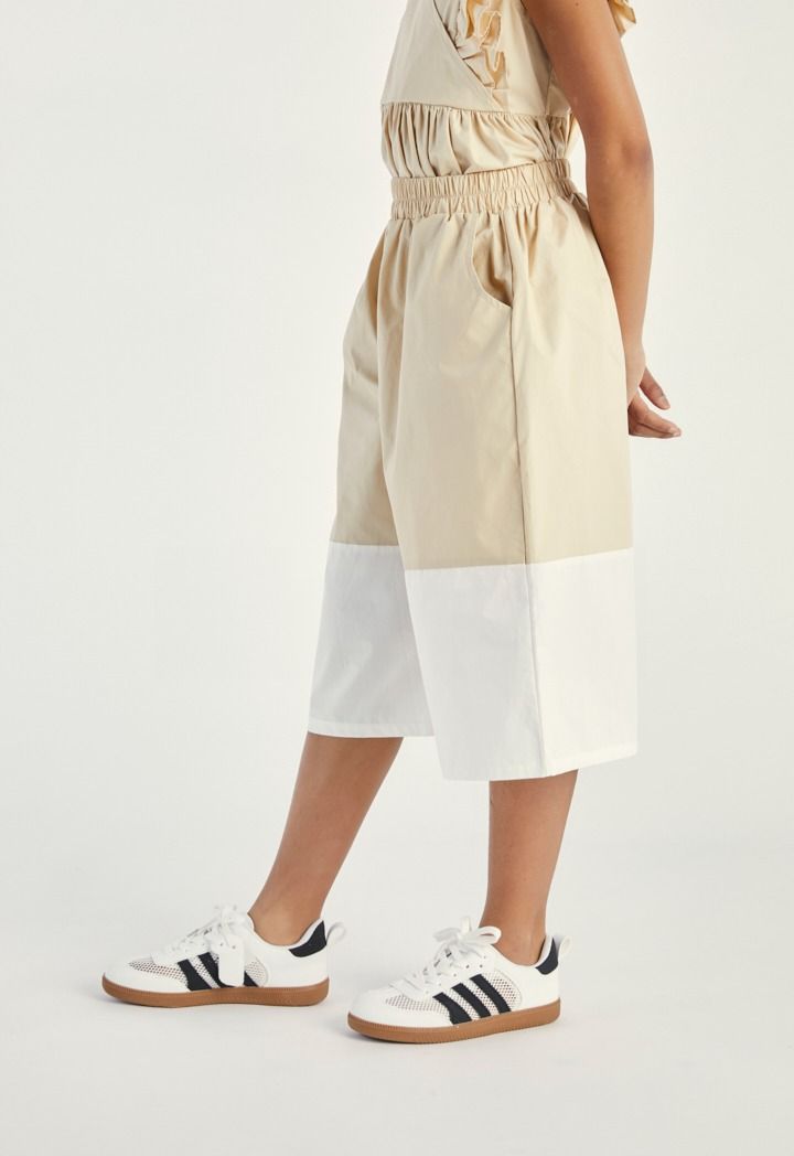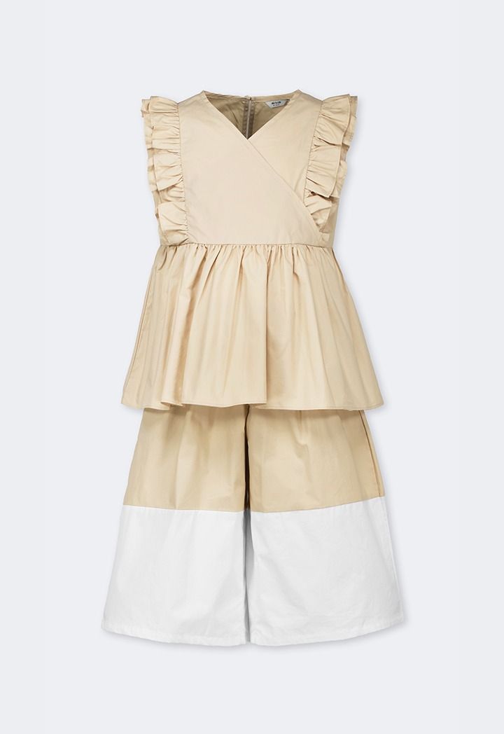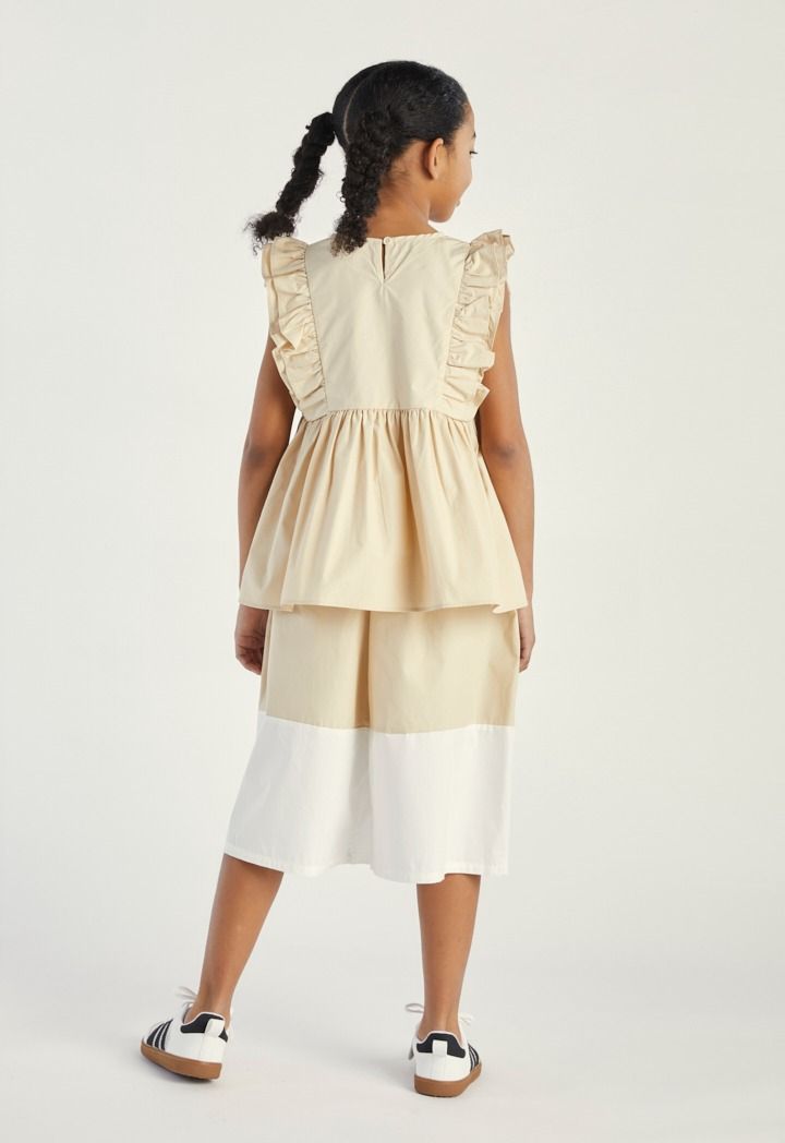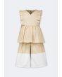 An elegant set that features a ruffled sleeveless top and a contrast pair of shorts.