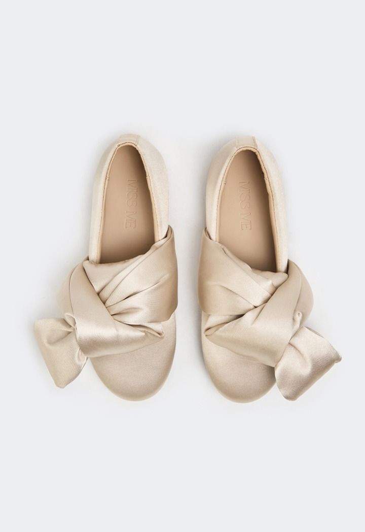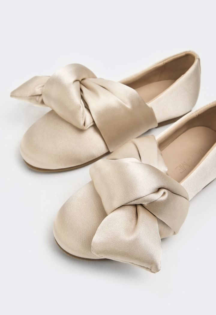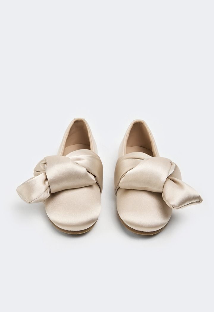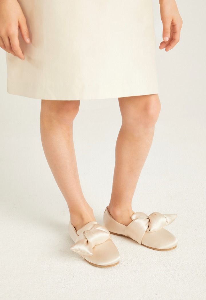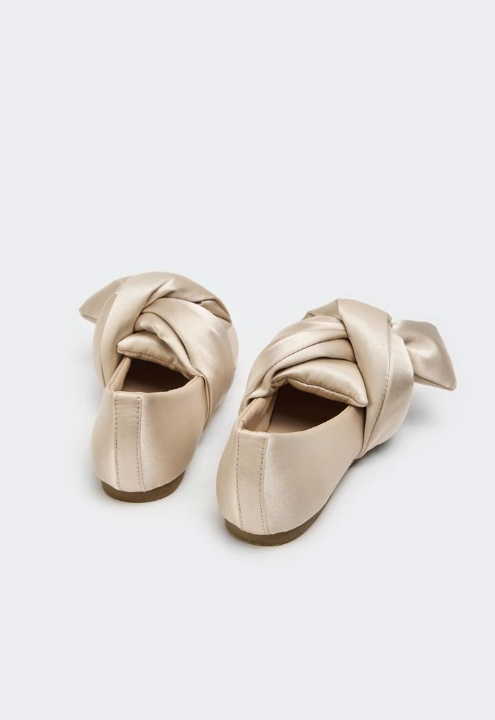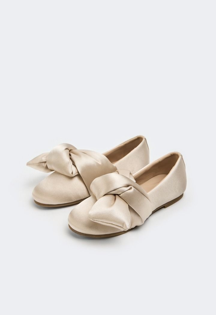 Multiply your daughters collection of shoes with this pair of satin knot flat ballerinas.
