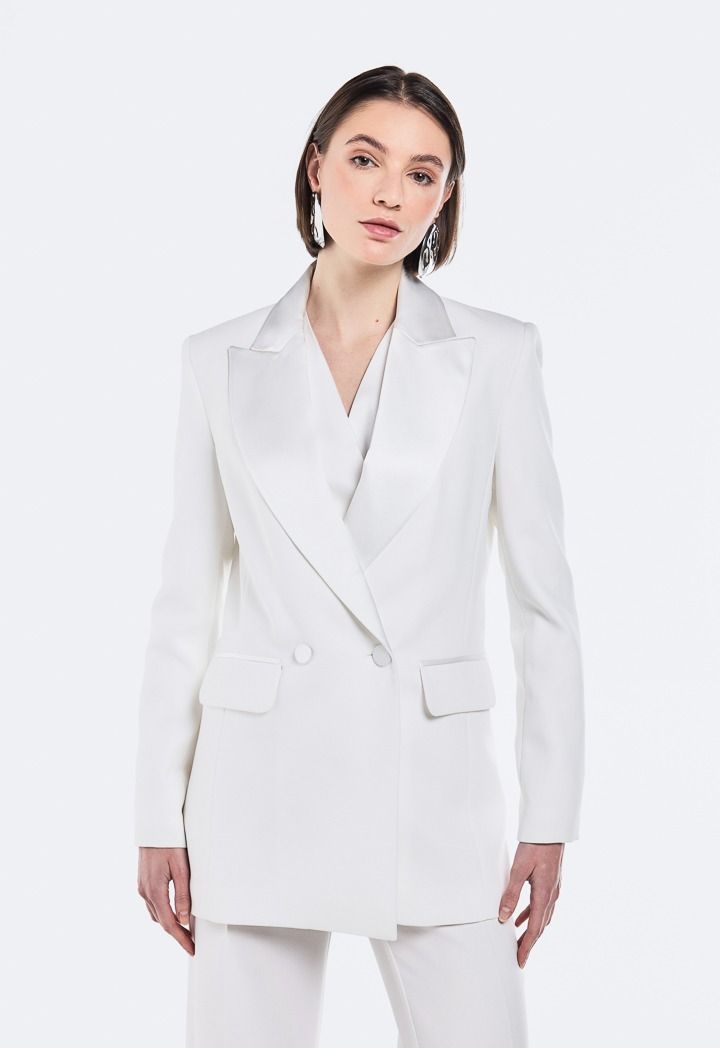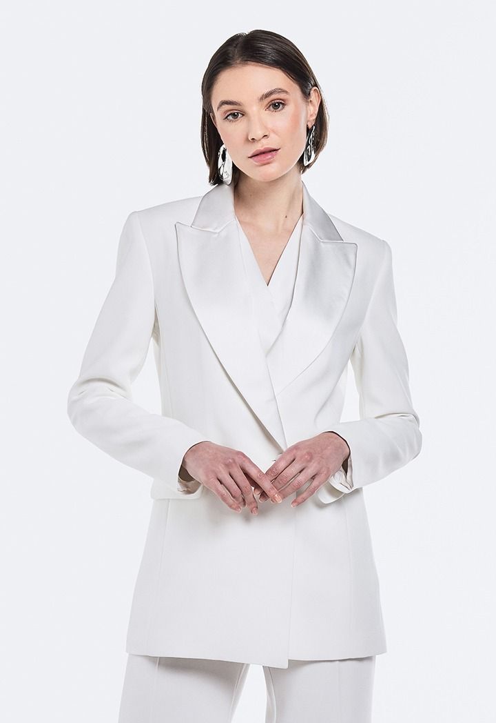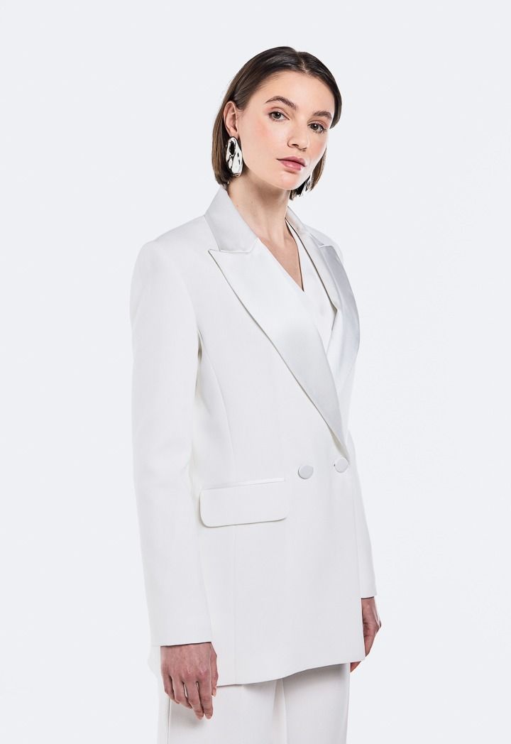 Our blazer provides a swift route to power dressing. It's tailored from a satin Collar, combining polished sophistication with lasting quality. Perfect for meetings or interviews, it ensures you leave a lasting impression.