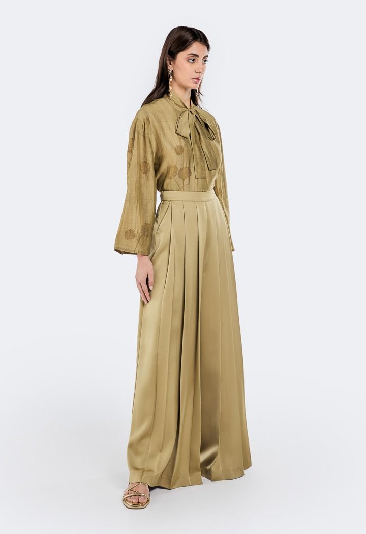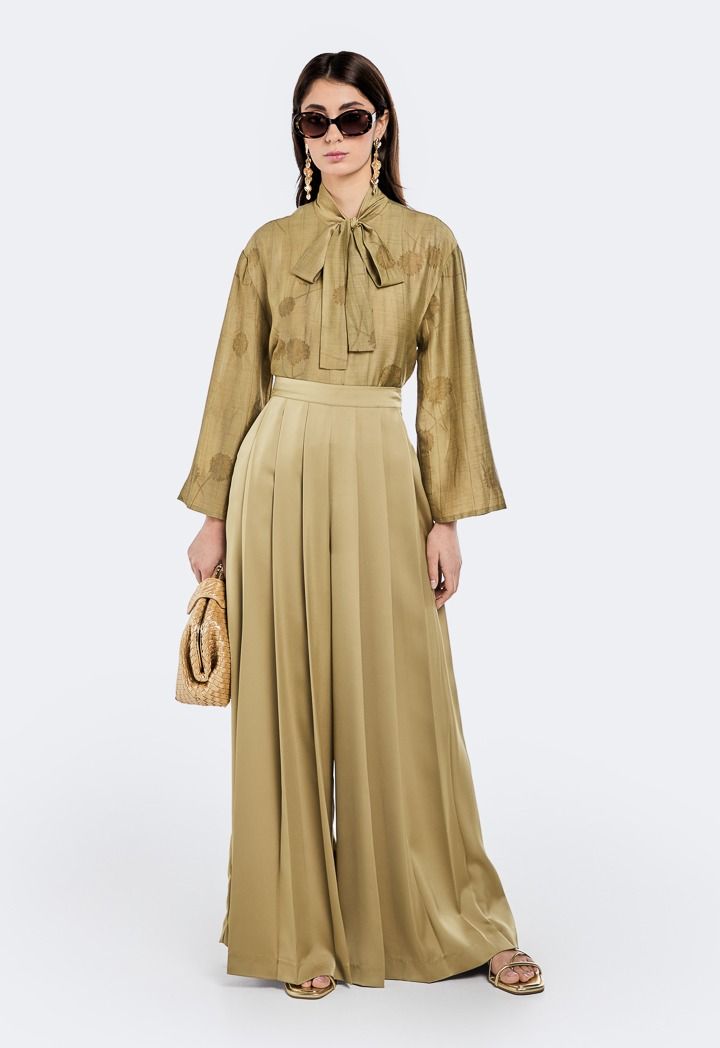 Satin Pleated Palazzo Trousers |