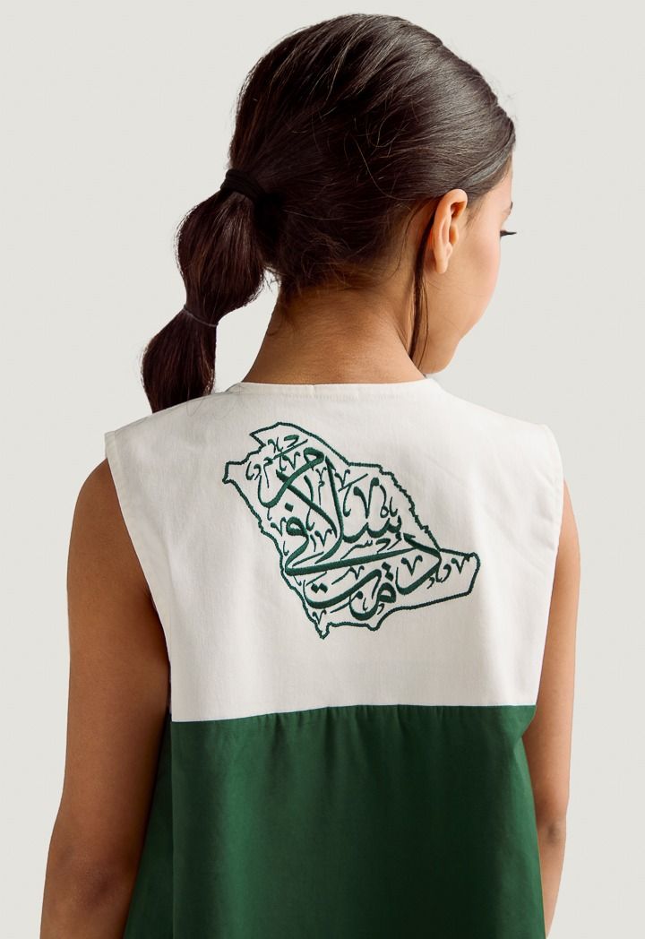 Celebrate the Saudi national day in style with this contrast sleeveless dress.