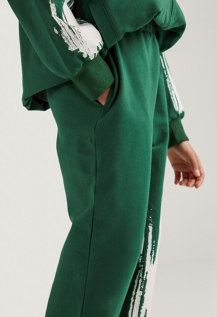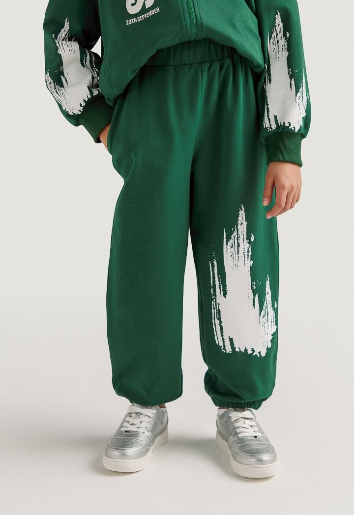 A vibrant pair of sweatpants that feature the Saudi National Day design.