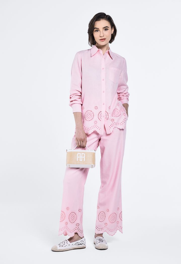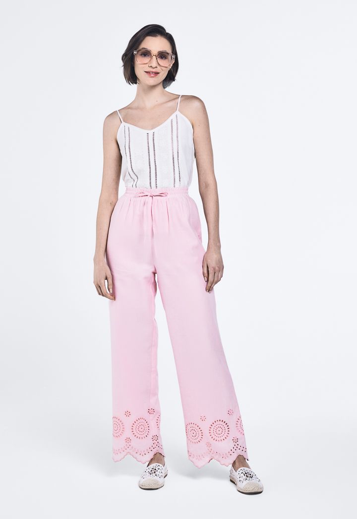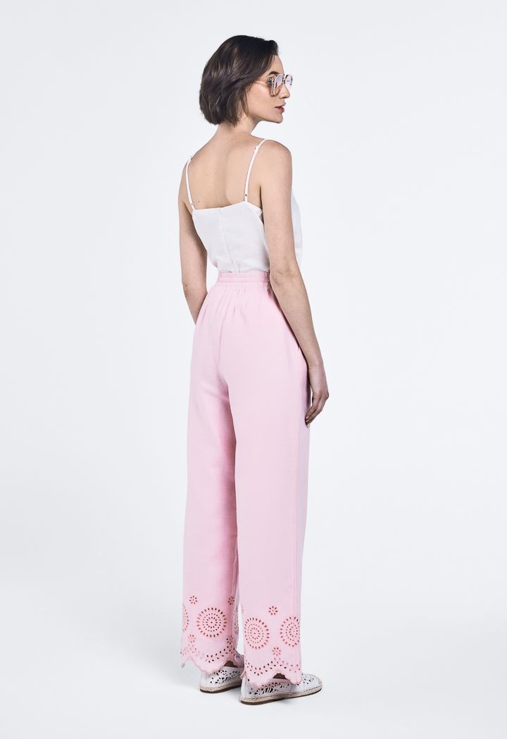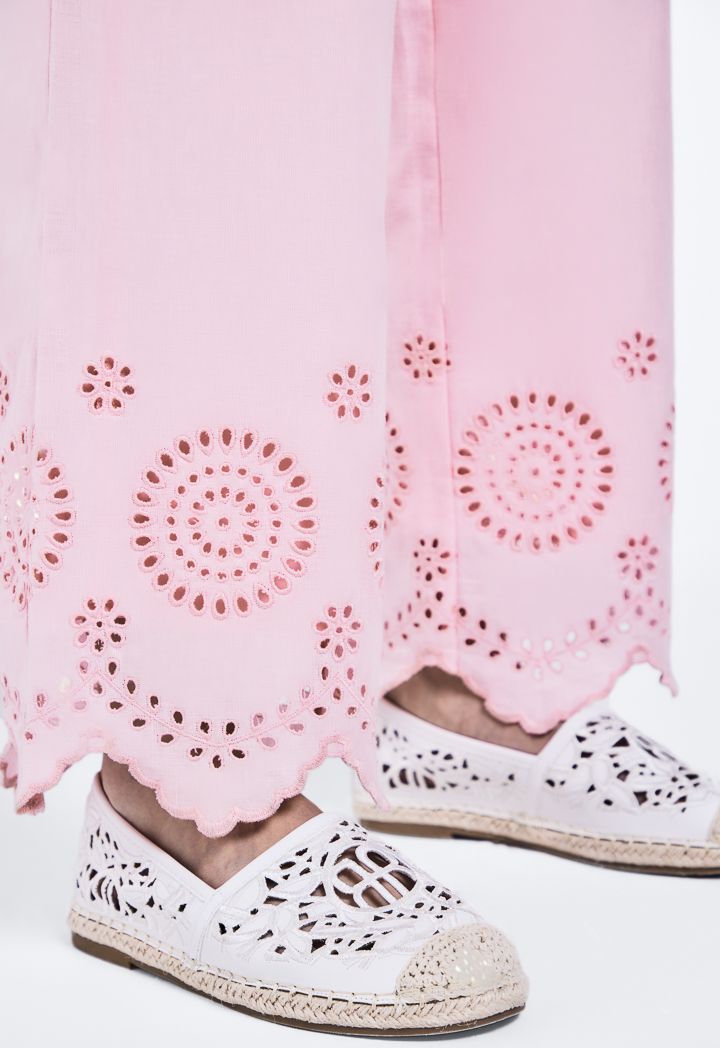 Schiffli Embroidered Asymmetrical Hem Trousers |