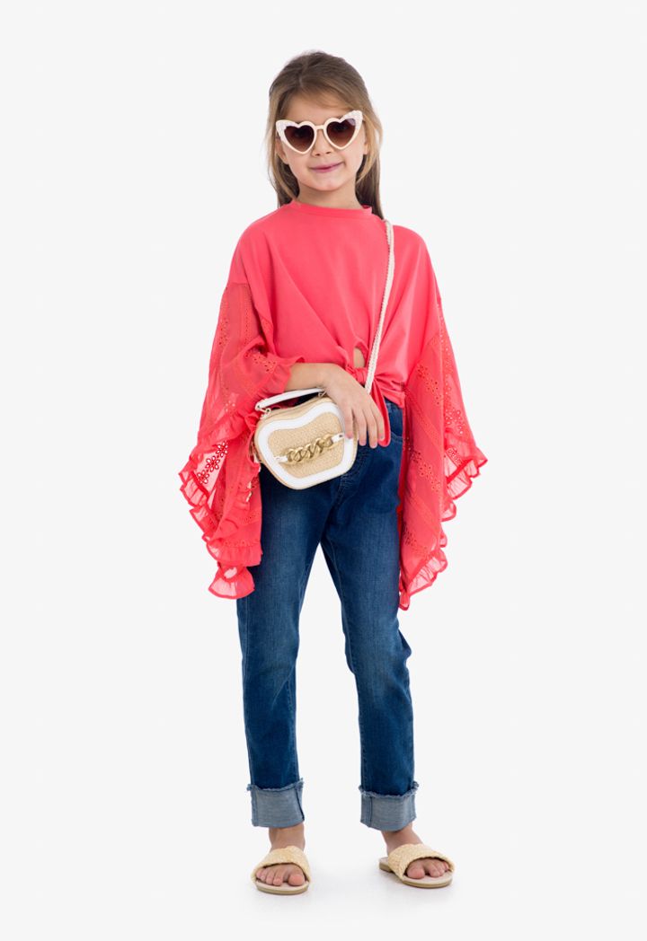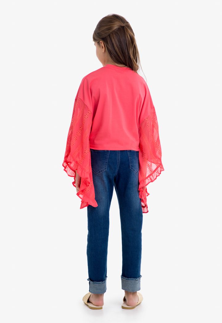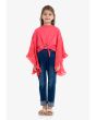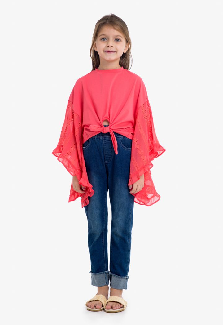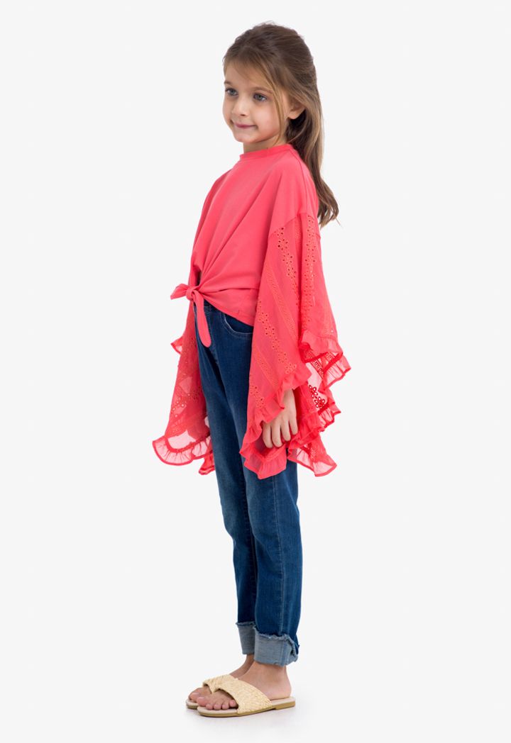Your girl will surely love this blouse. It Features, a Round Neckline, Butterfly sleeves with Schiffli Details and Front Tie.