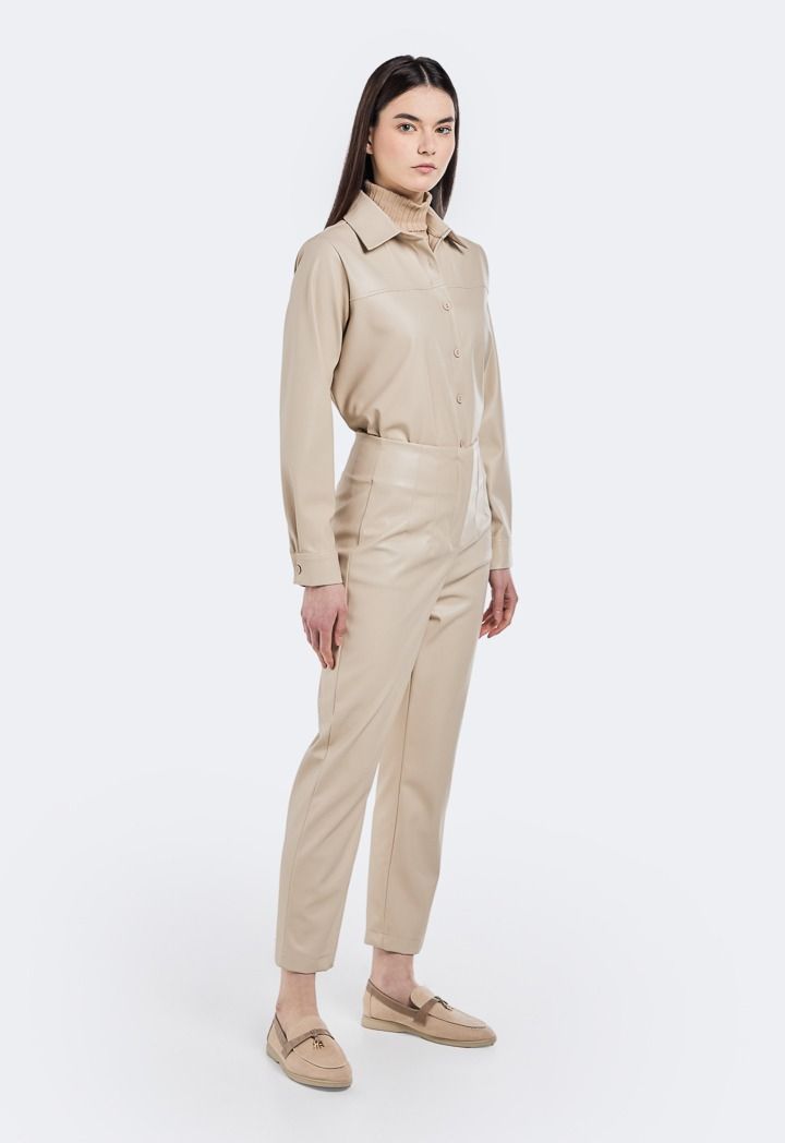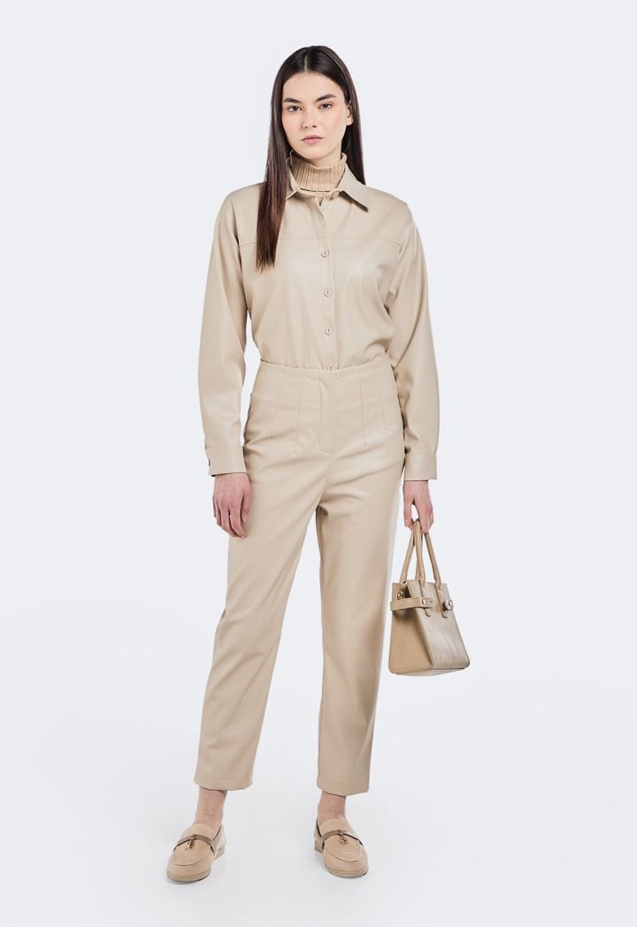 Design: High Waist, Solid, PU Leather, Seam Detail