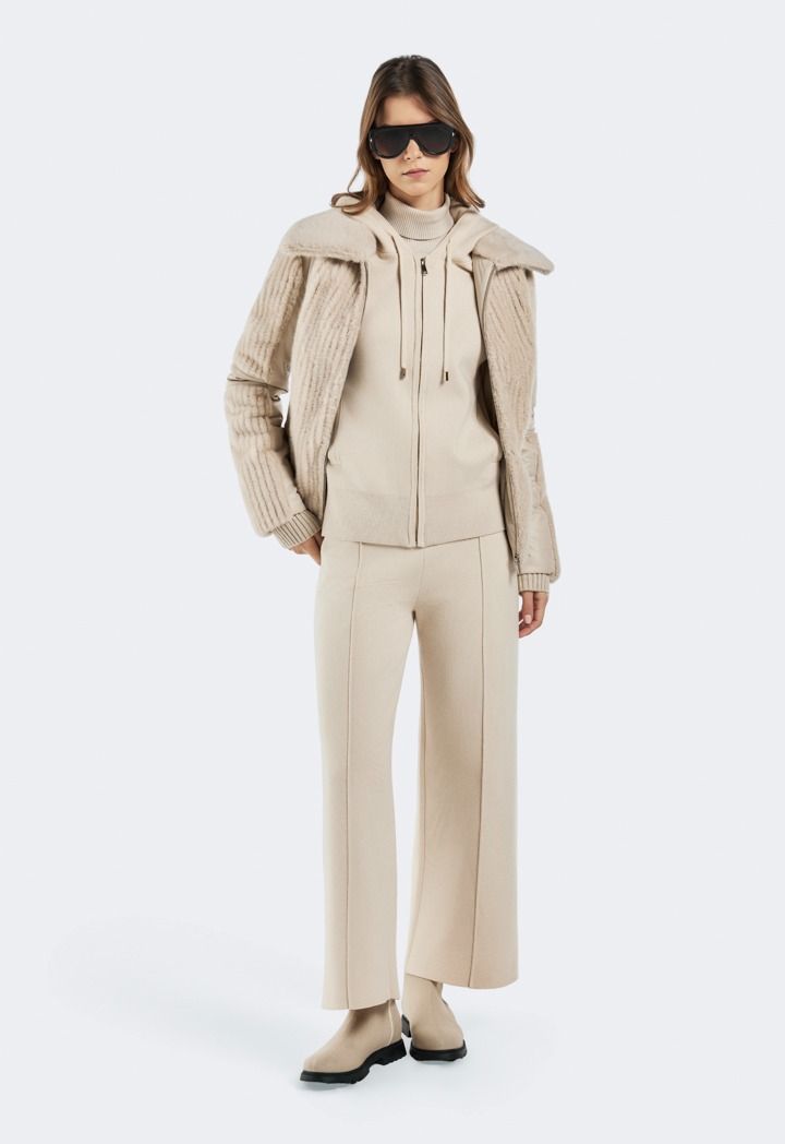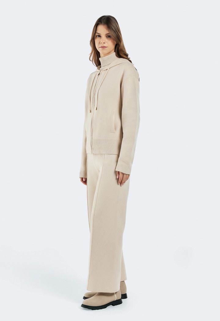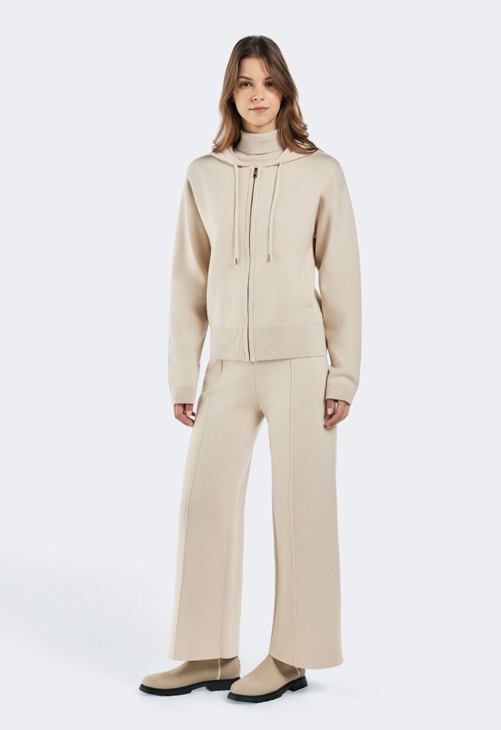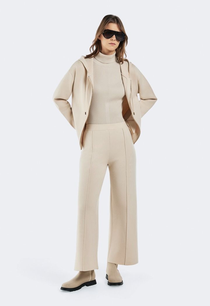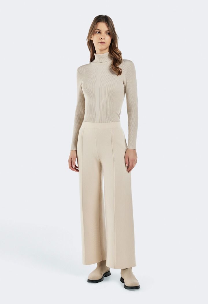 Design: Solid, Knitted, Seam Details, High Waist, Wide Leg, Straight Cut
