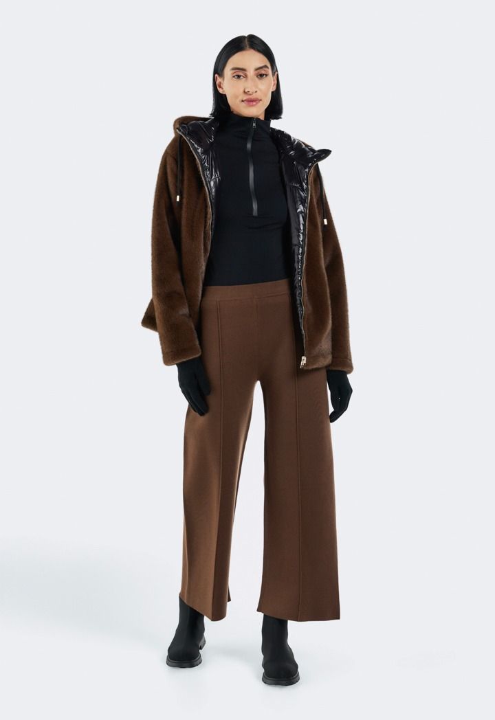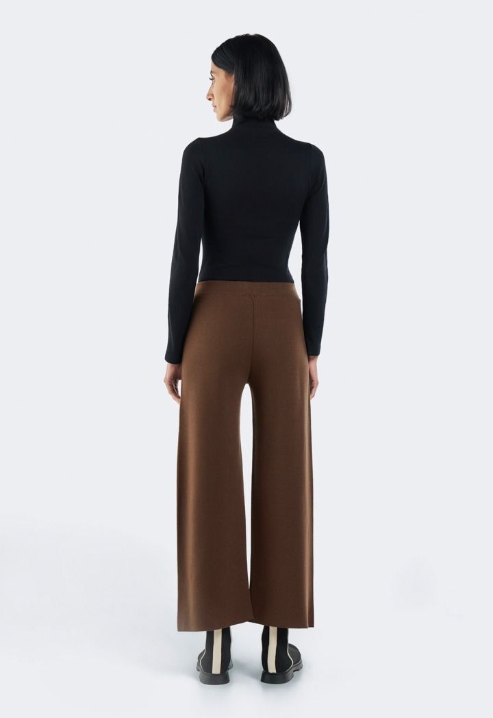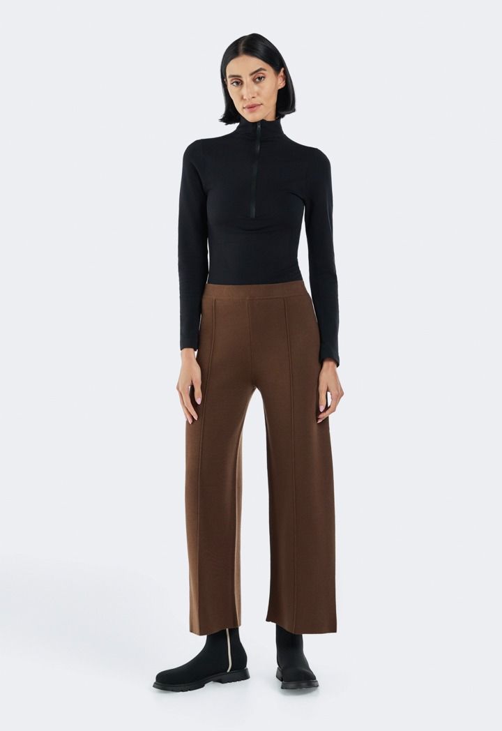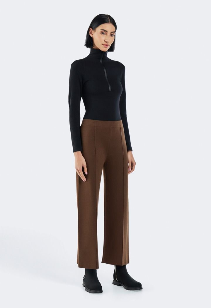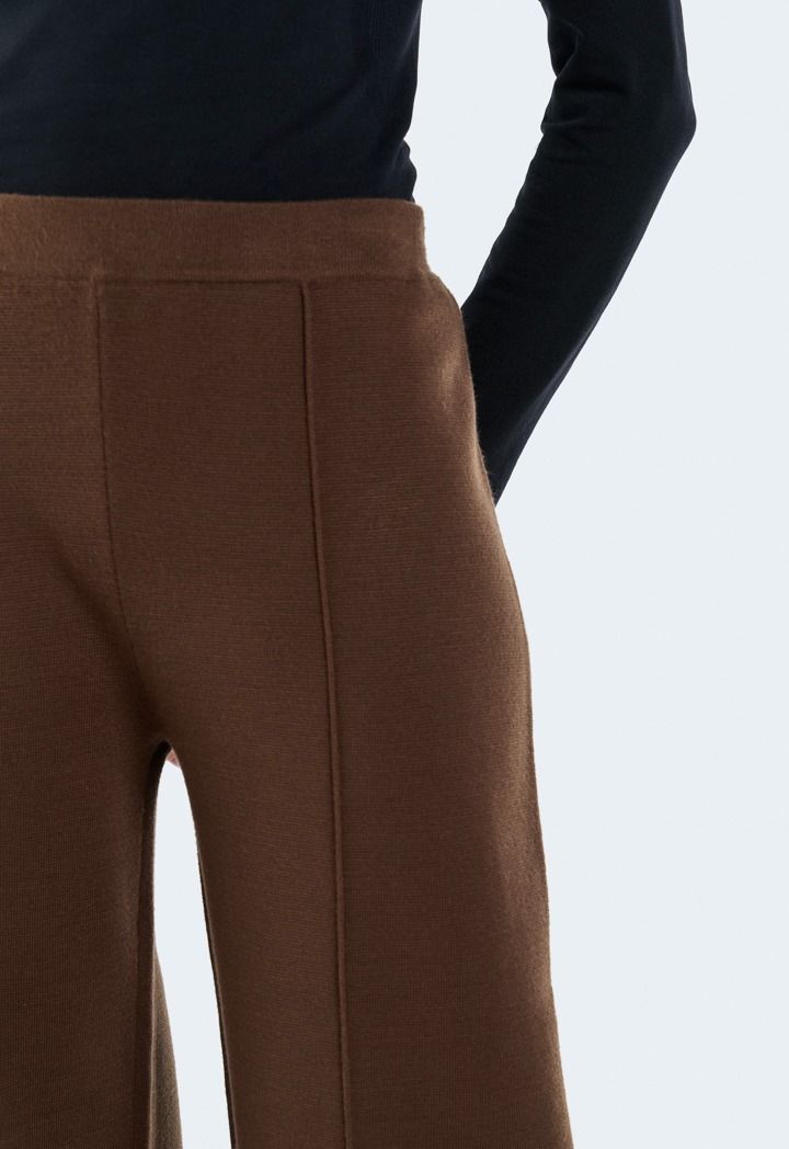 Design: Solid, Knitted, Seam Details, High Waist, Wide Leg, Straight Cut