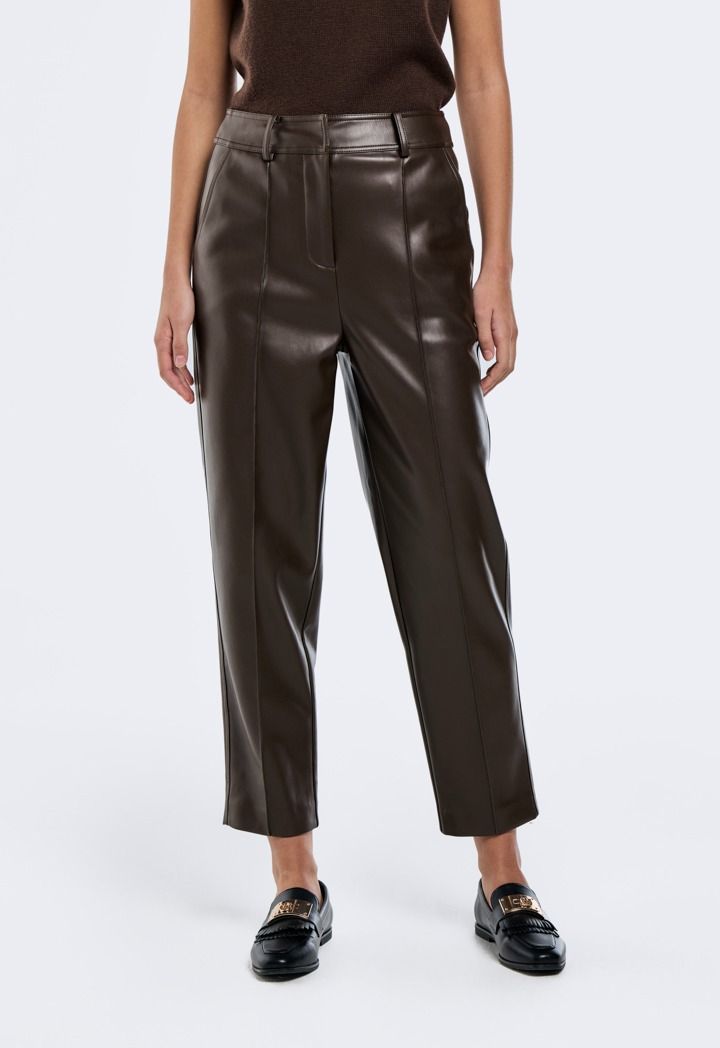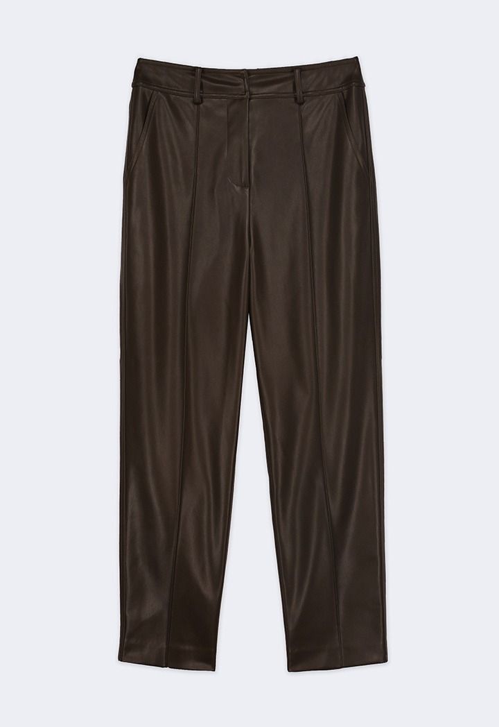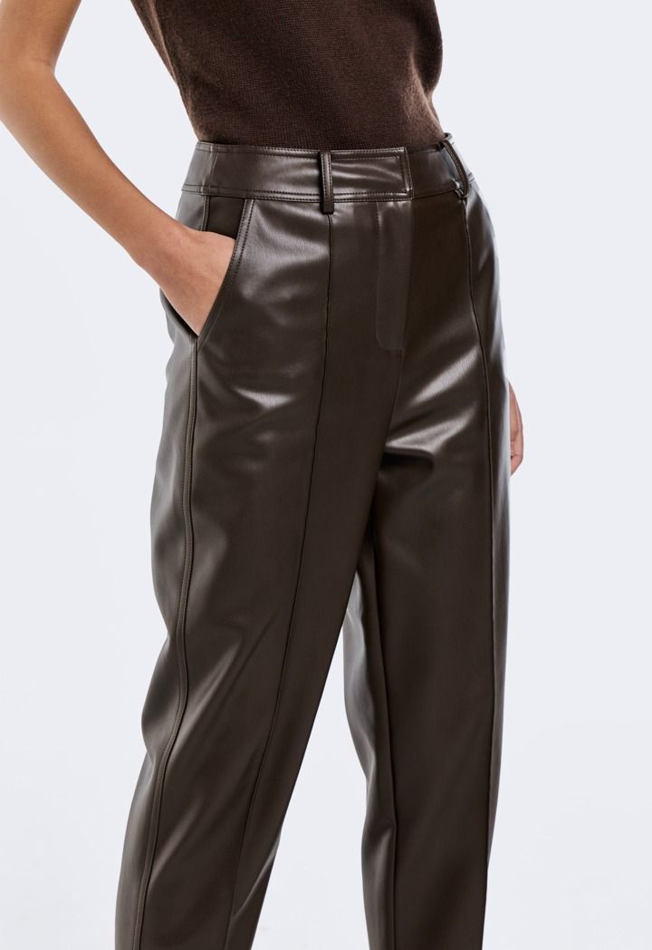 Design: Solid, Seam Details, Side Pockets, PU Leather, High Waist