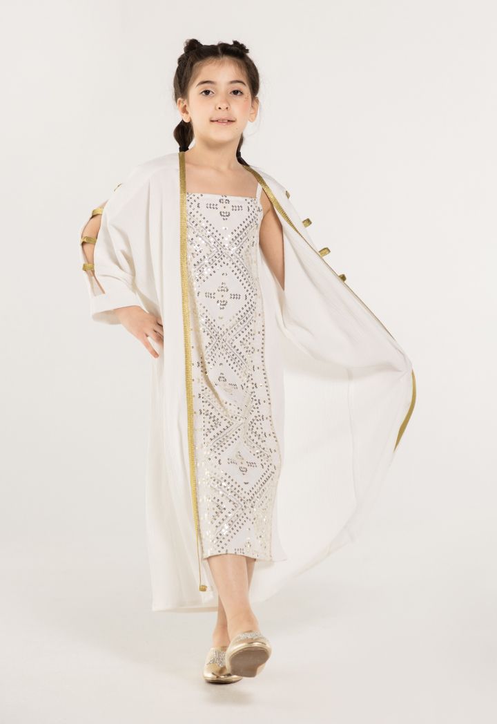 Sequin And Lace Embellished Dress And Abaya Set (2 PCS)