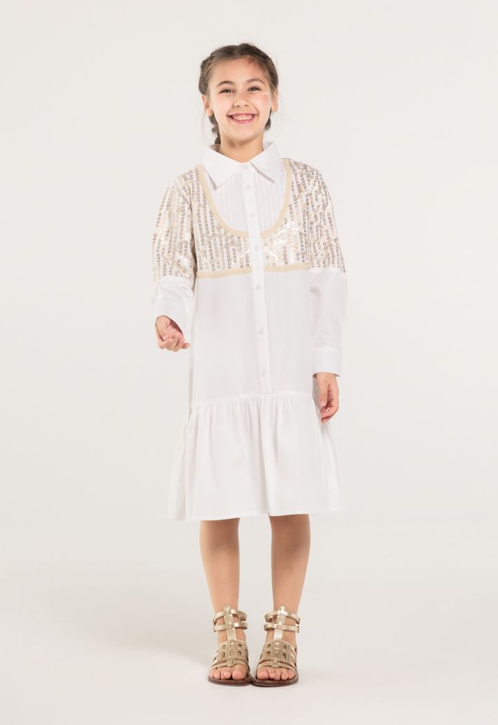 Design Solid, Ruffled Hem, Sequin And Lace Embellished