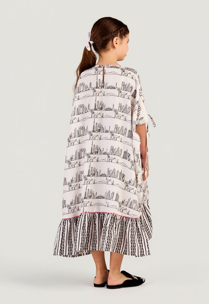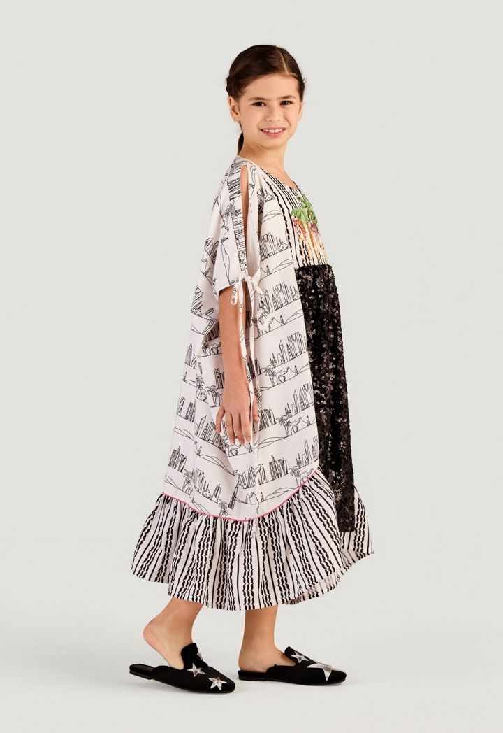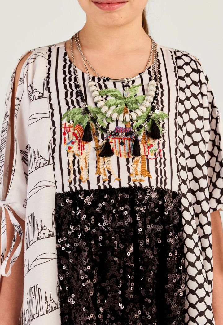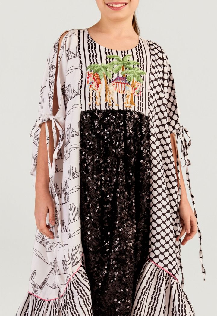 Bring sparkle to her Ramadan with this playful desert-print dress, featuring shimmering sequins and bright embroidery for joyful celebrations.