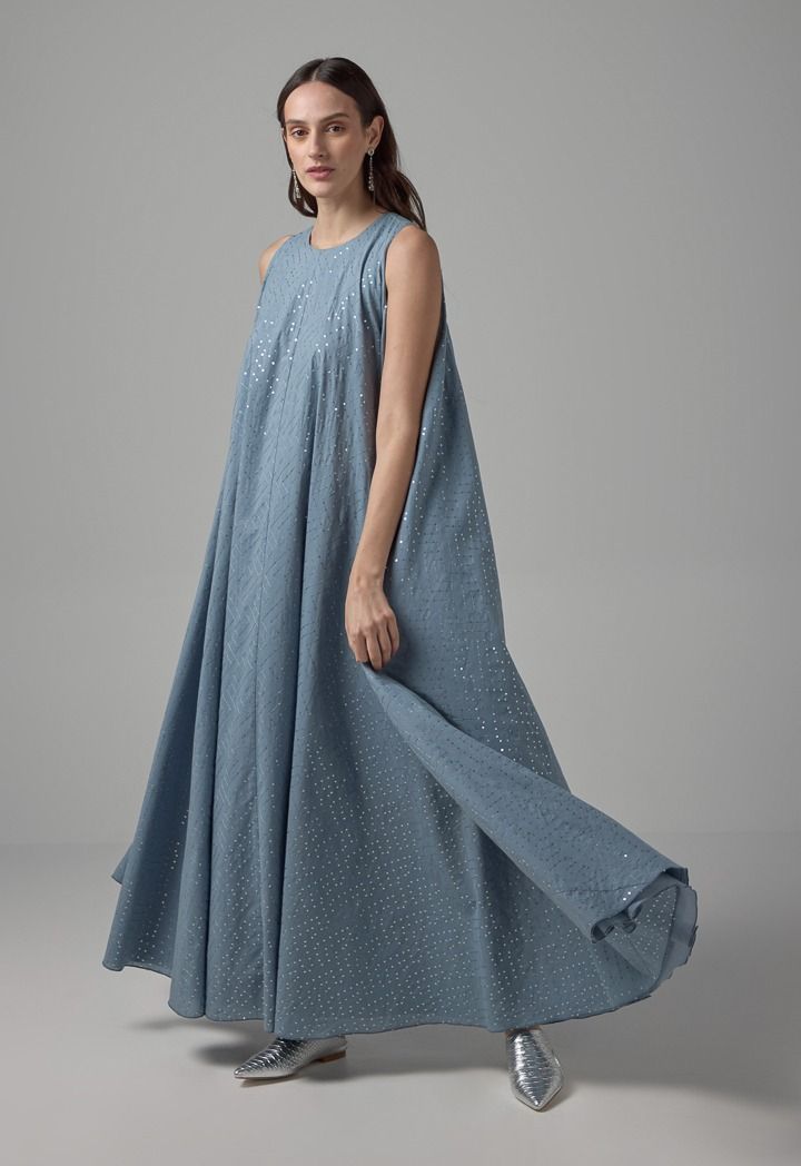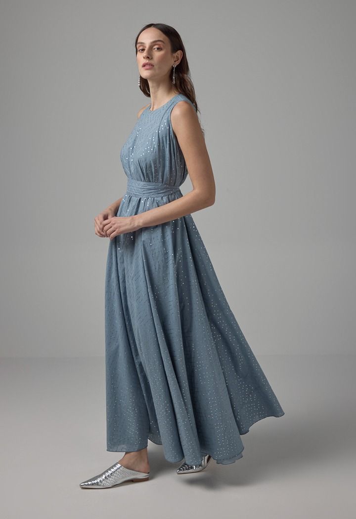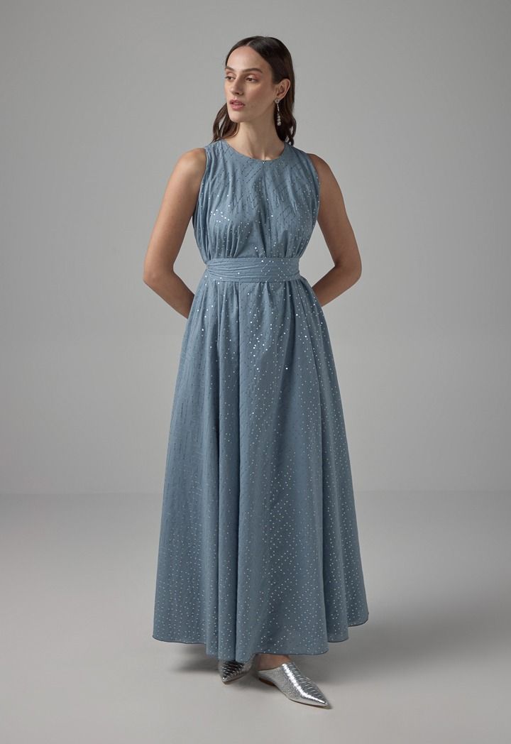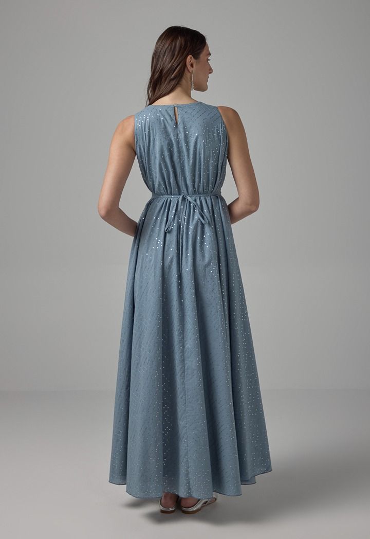 Sequin Embellished Belted Maxi Dress |