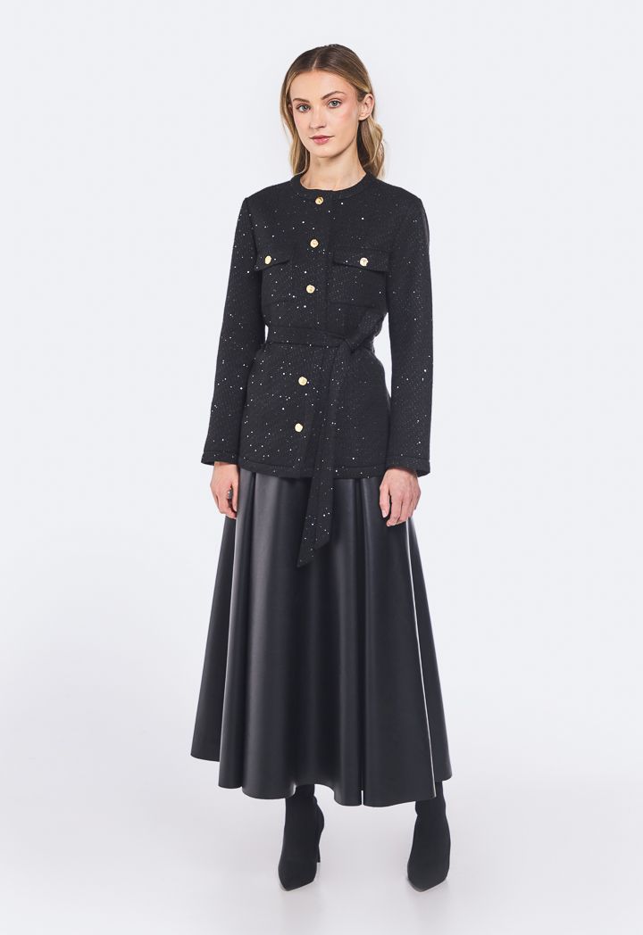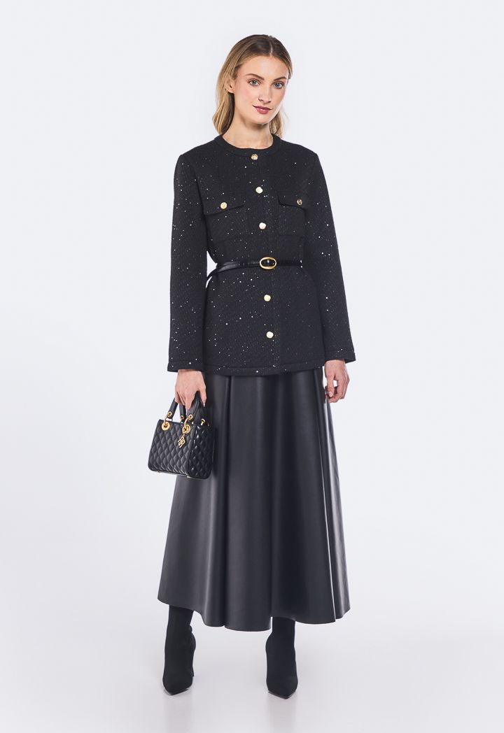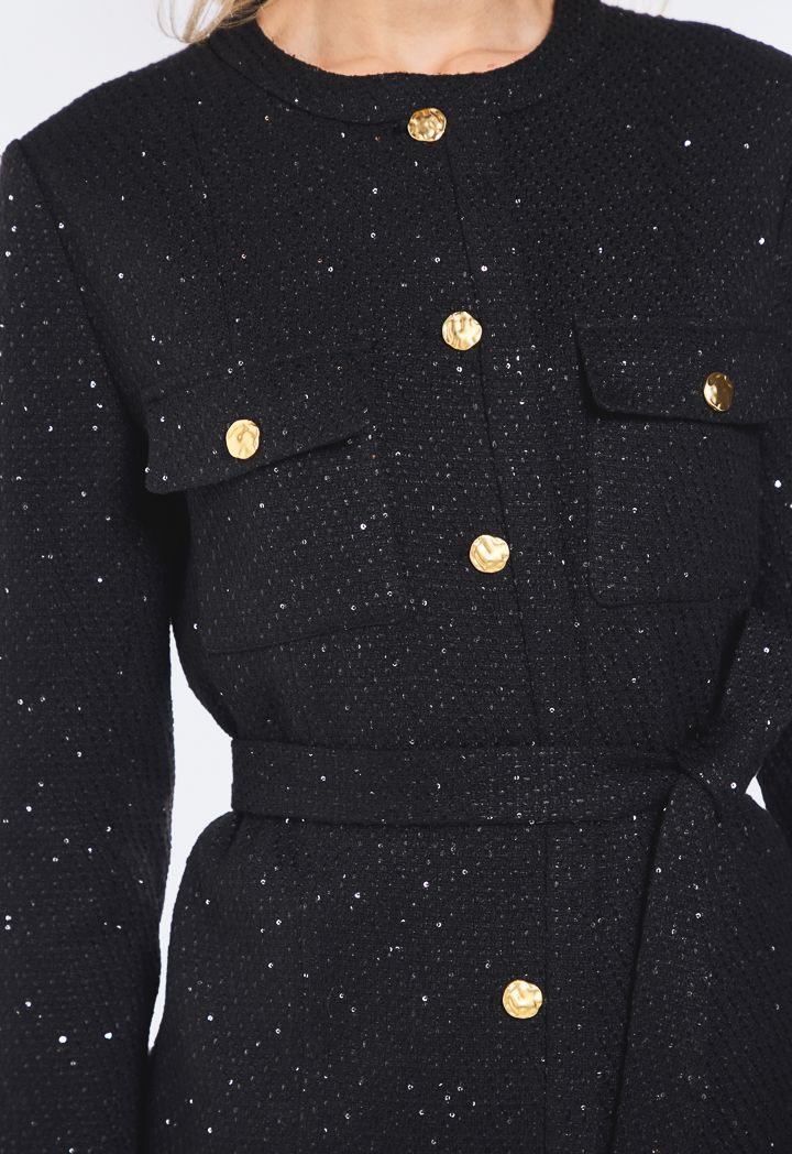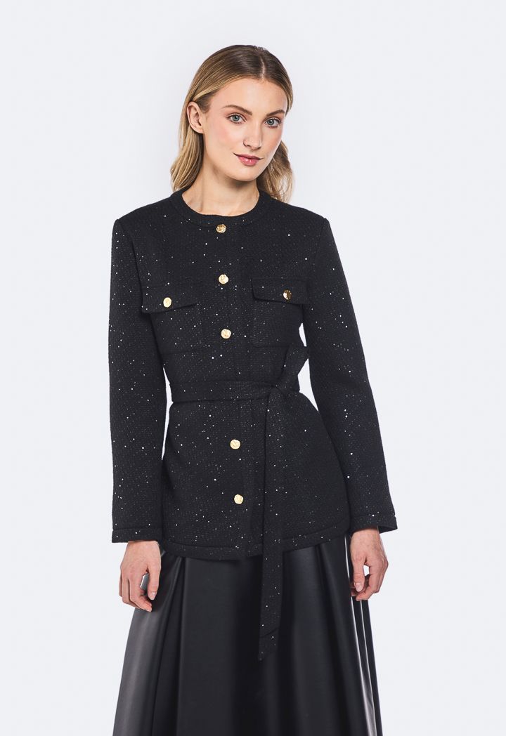Design: Solid, Flap Pockets, Sequin & Button Embellished, Tweed, Belted, Attached Lining