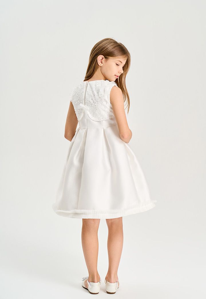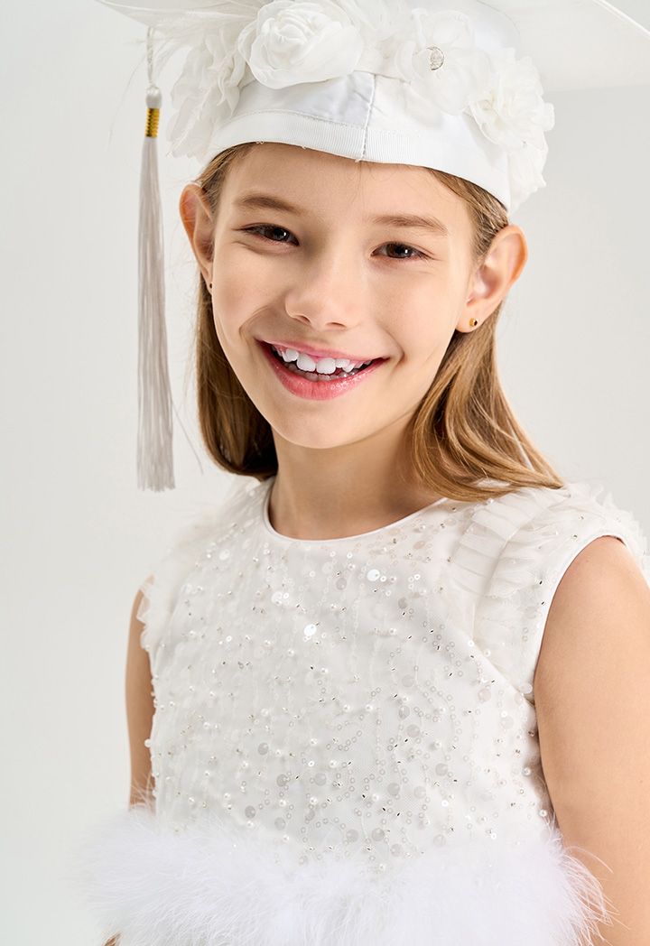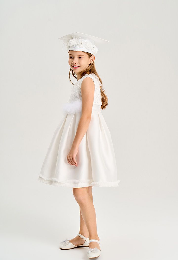 The perfect amount of elegance and luxury is in this dress, thanks to its faux feather details, crystal belt and puff Skirt.
