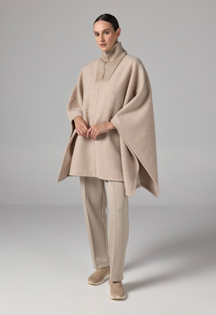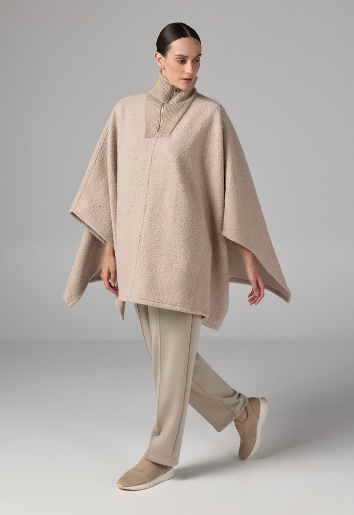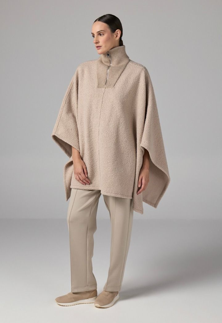 Shearling detailed knitted poncho, cozy, soft, and perfect for winter days.