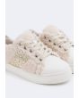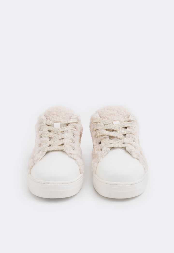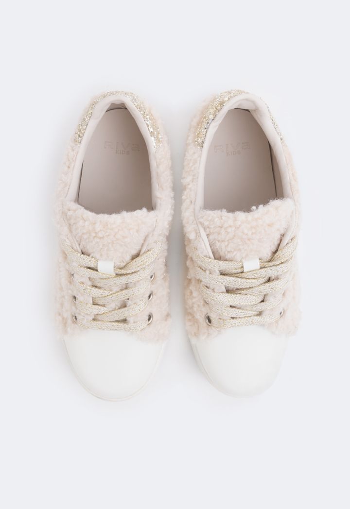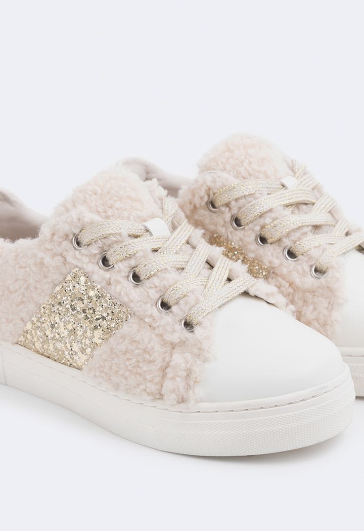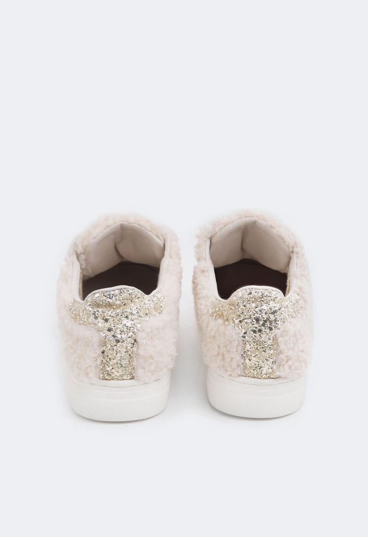 An elegant yet comfortable pair of shoes that features a cute shearling and glitter design.