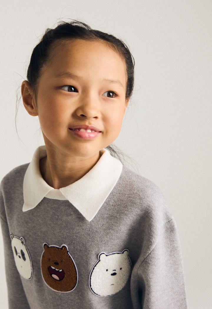 A knitted sweater that supports shearling patches and a contrast design.