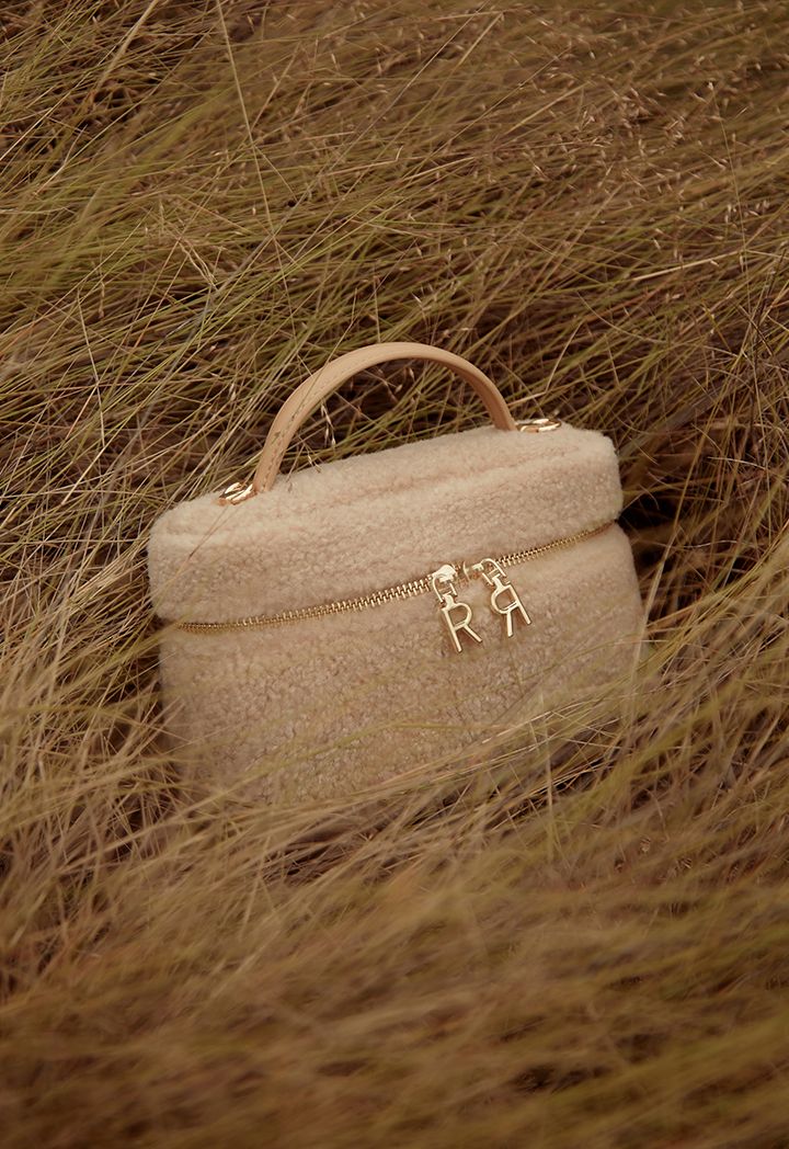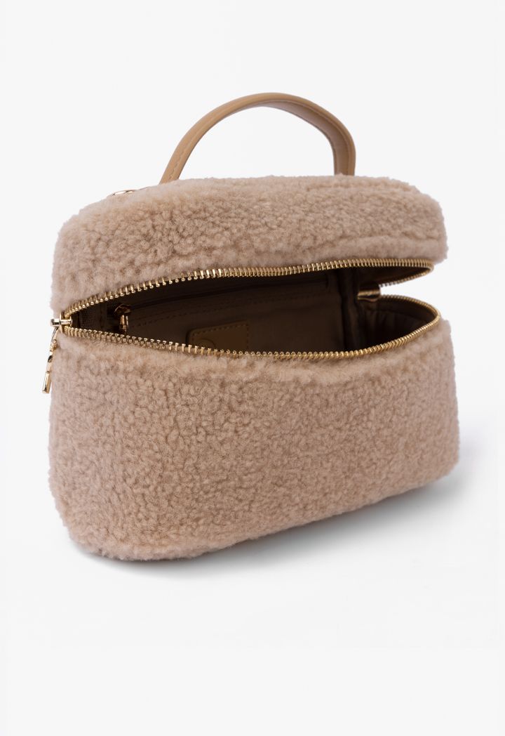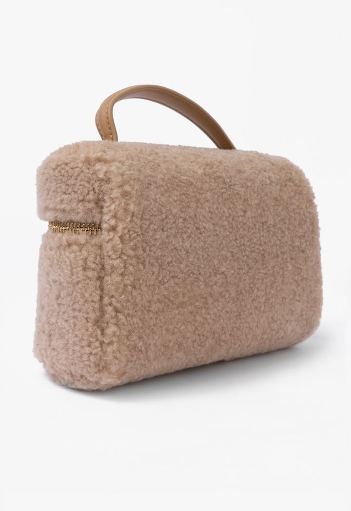 A top handle shoulder bag that is both stylish and warm thanks to it shearling design.