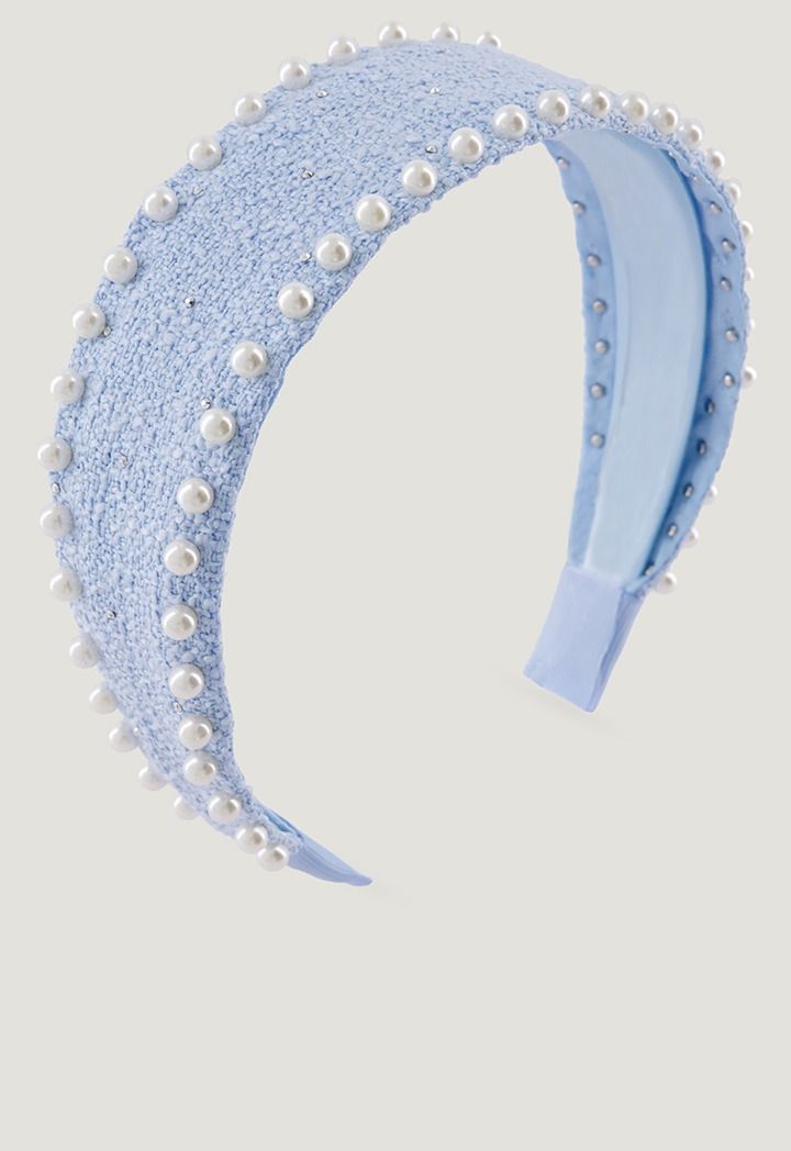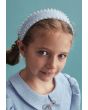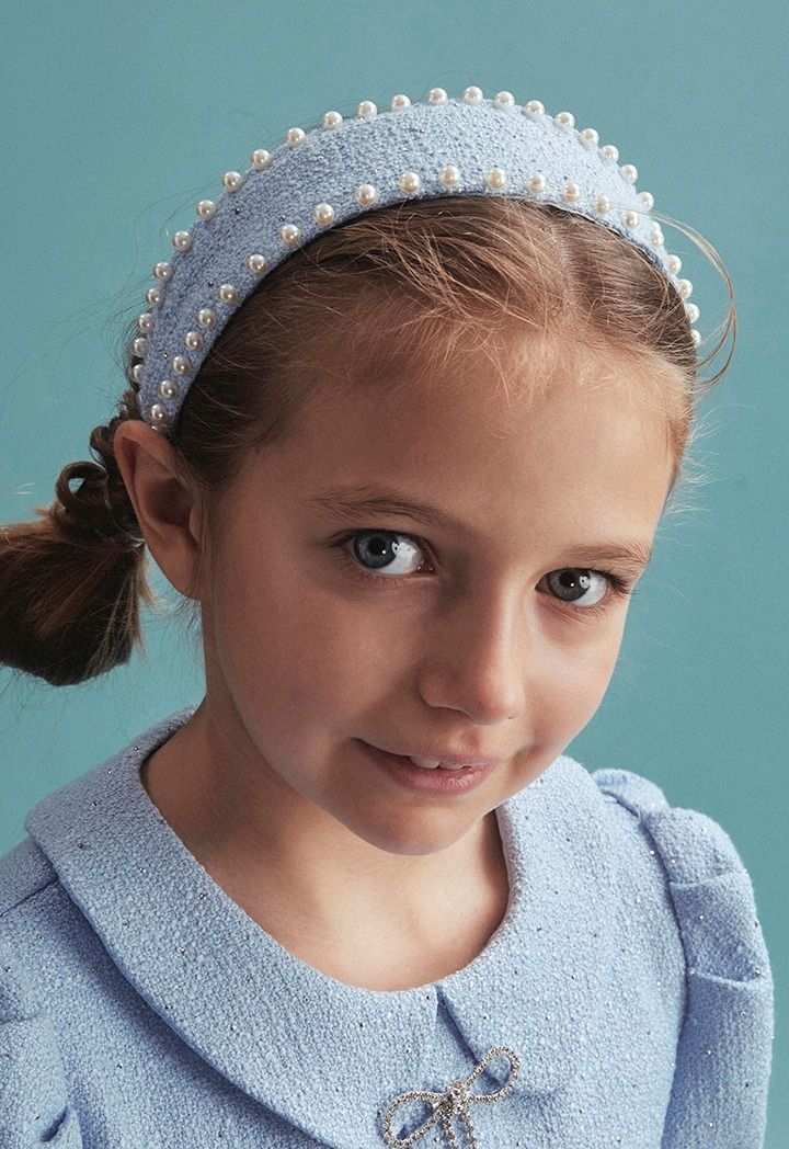 Headband bursting with tiny shimmery dots and pearls-Soft textured luxury that crowns every girl a star.