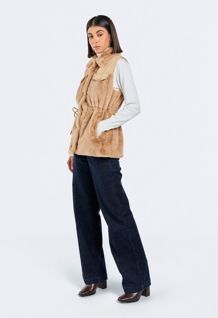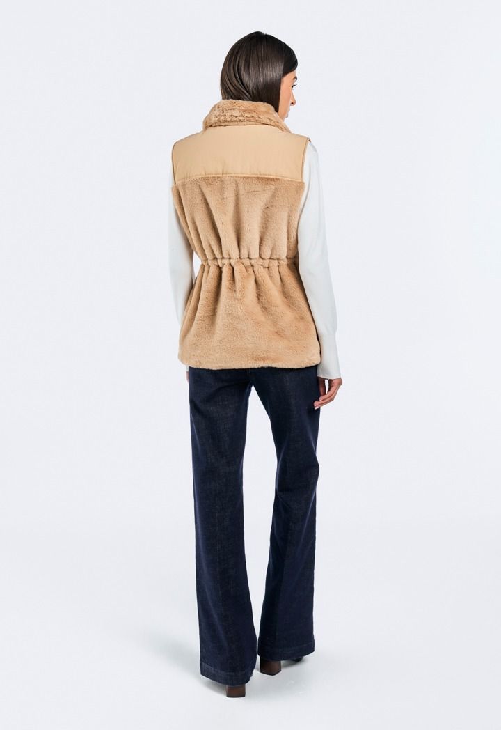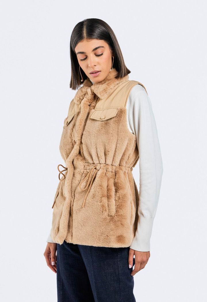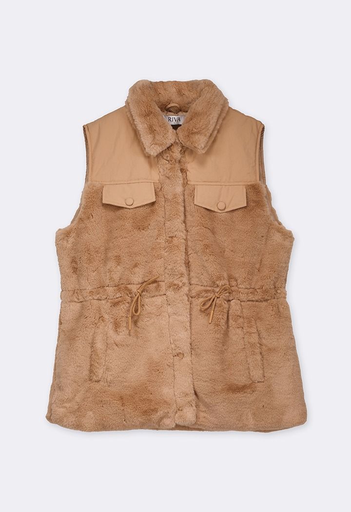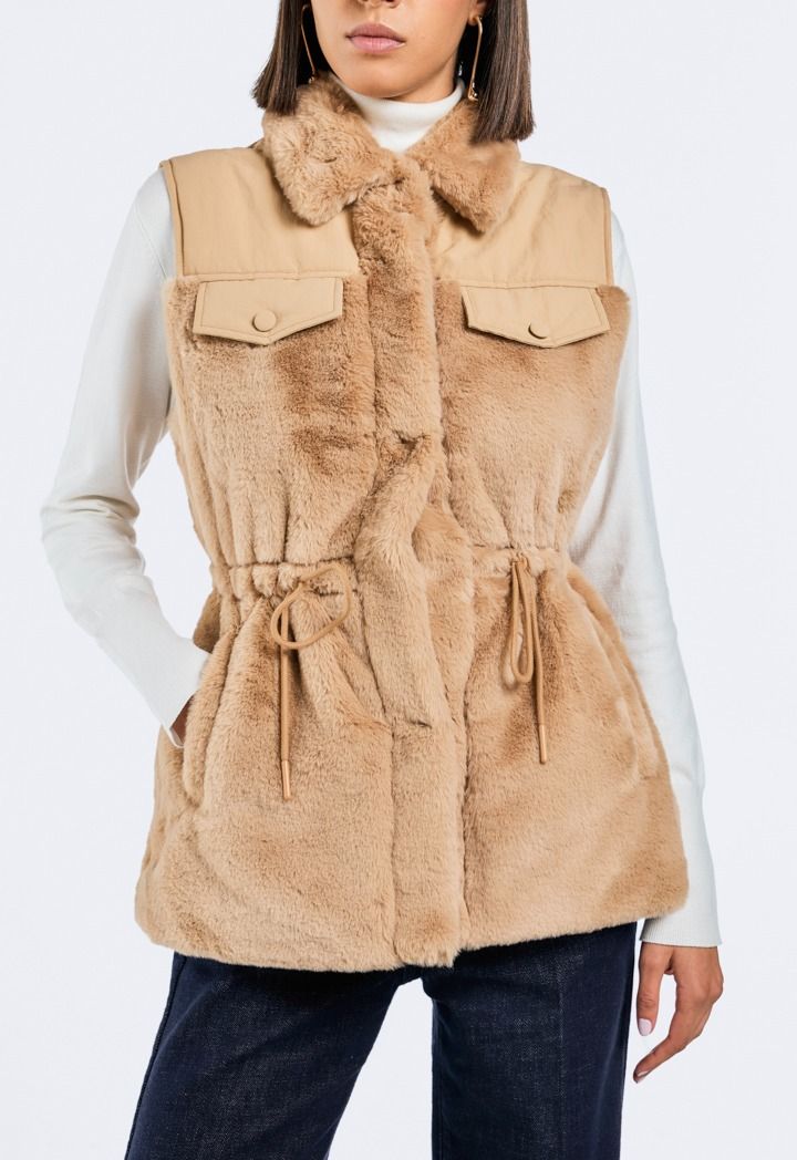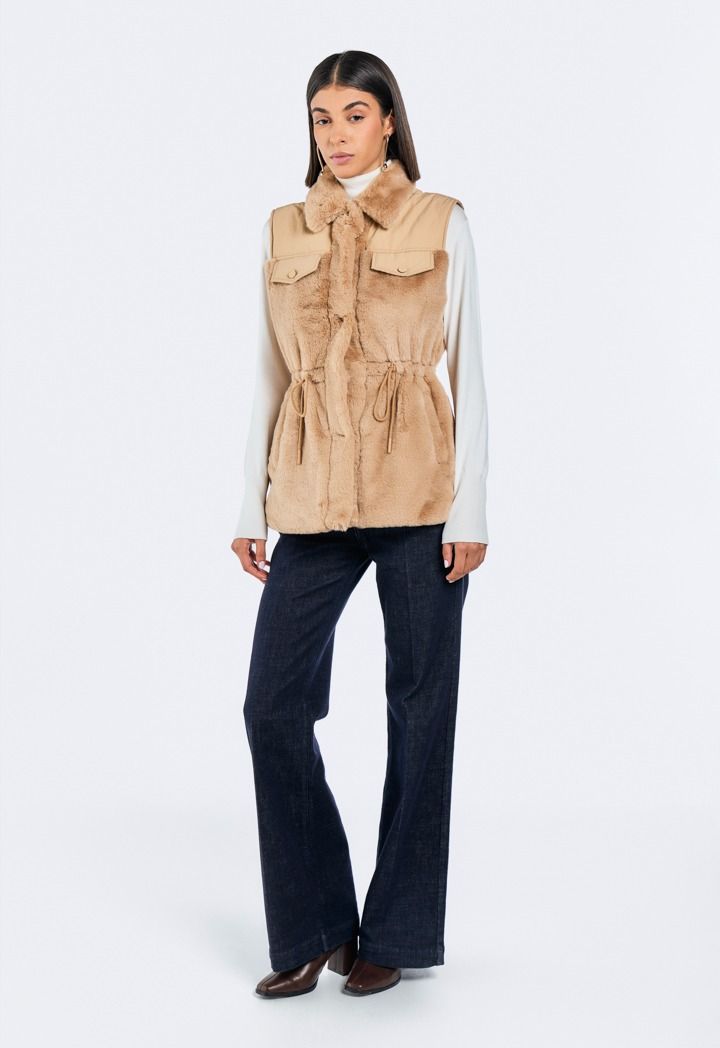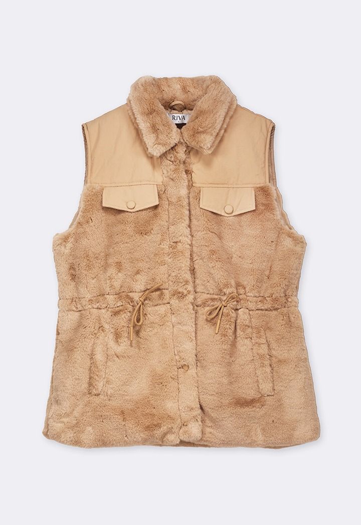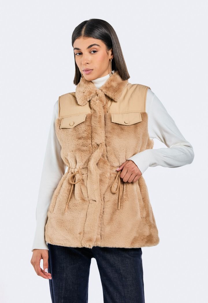 A shirt collar faux fur vest featuring a cozy design and a luxurious feel.