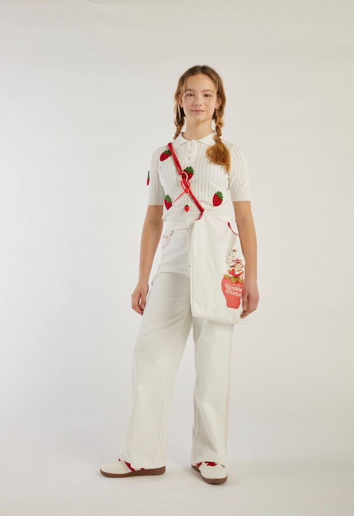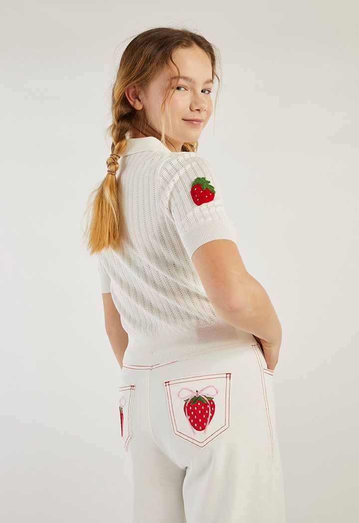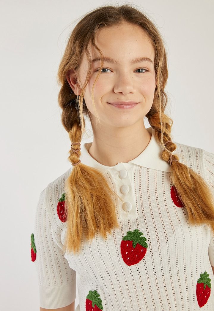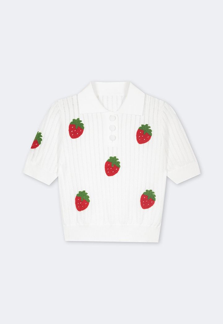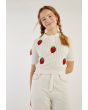 Knitted blouse with a unique design, featuring crochet prints in the shape of strawberries, adding a touch of elegance and fun to every detail