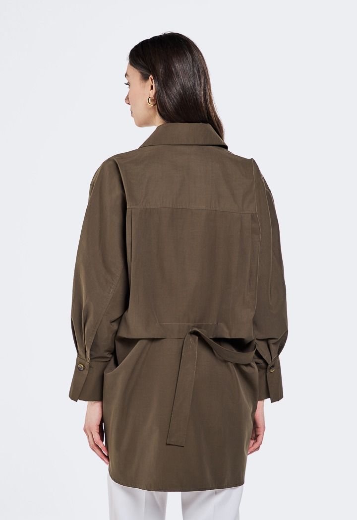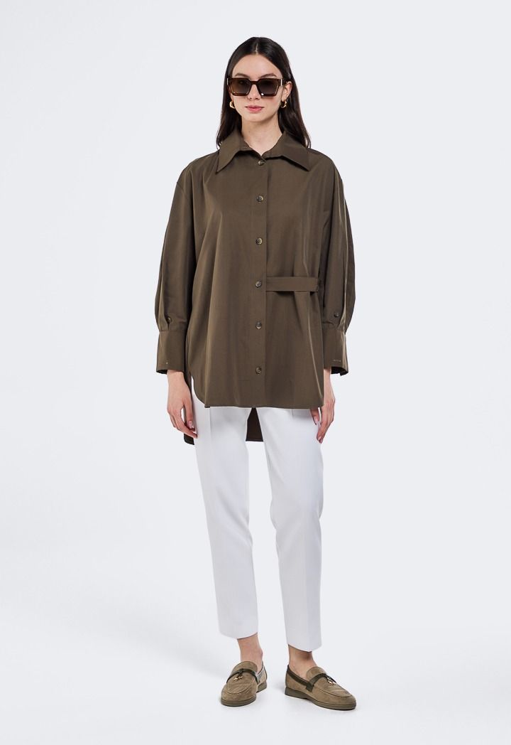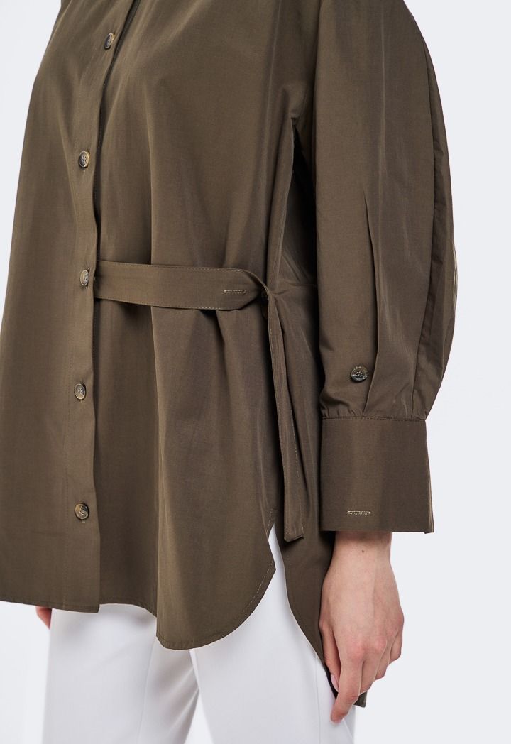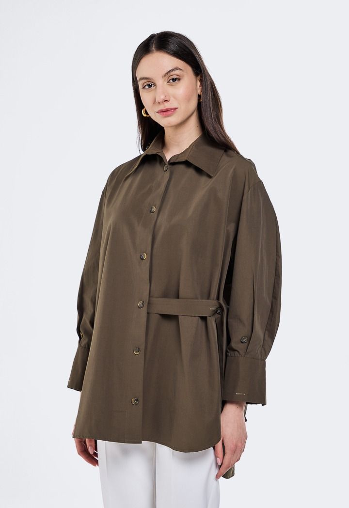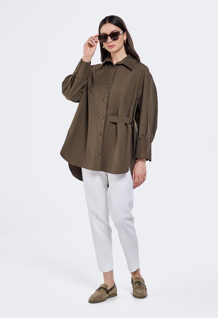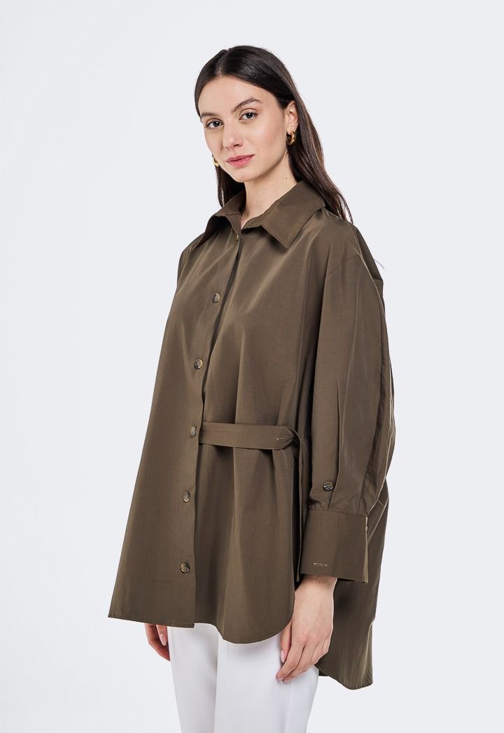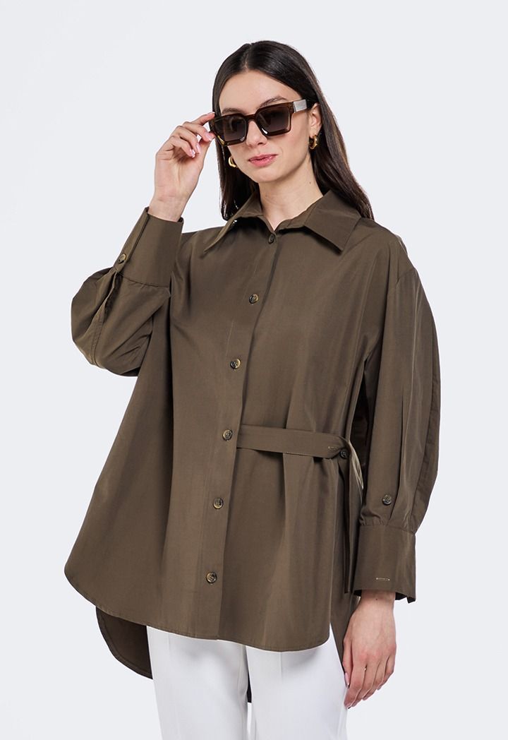 Whether worn loose for a relaxed vibe or cinched at the waist for a structured look, this adjustable-belt shirt offers endless styling possibilities.