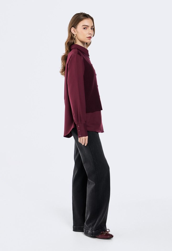 Elevate your style with this unique woven shirt featuring a soft knitted overlay, where comfort meets sophistication.