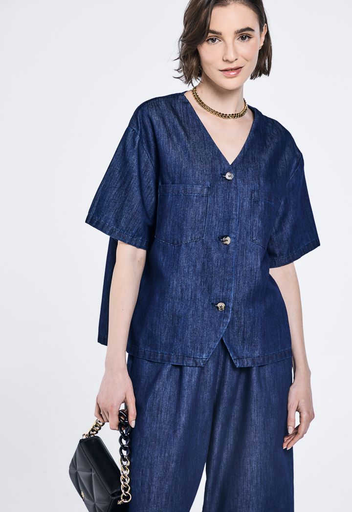 Design : Solid, Denim, Patch Pockets, Relaxed Fit