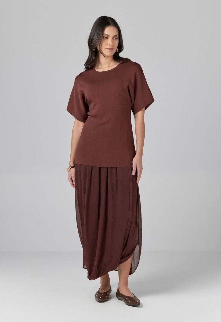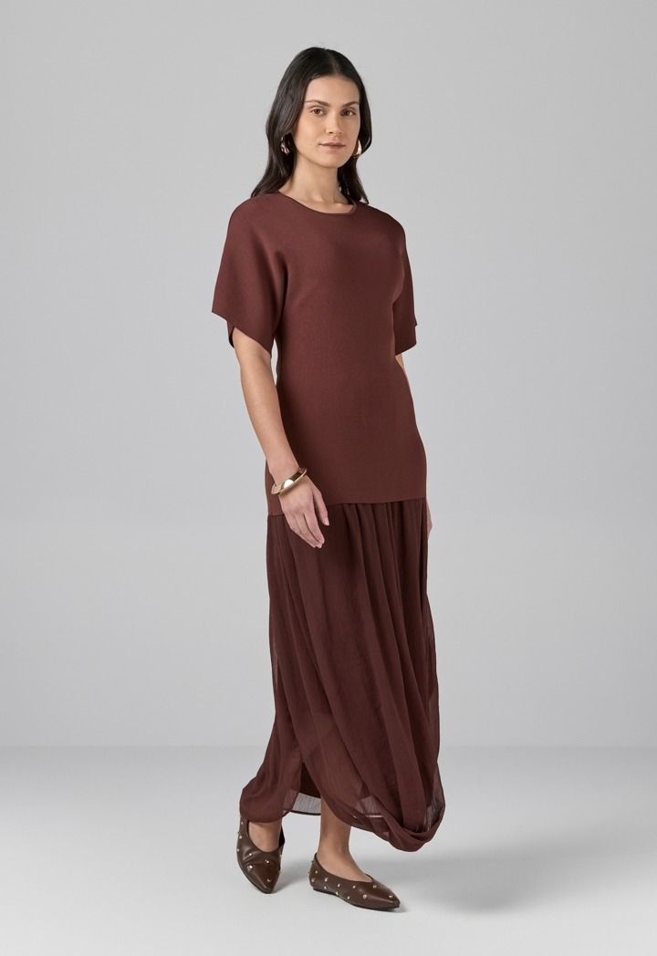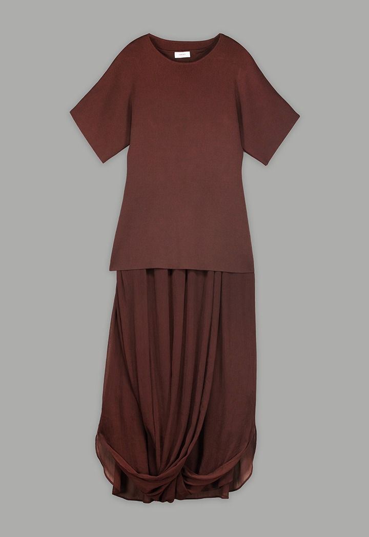 Design: Solid, Pleated, Attached Lining, Sleeveless Dress With Undetachable Knitted Top