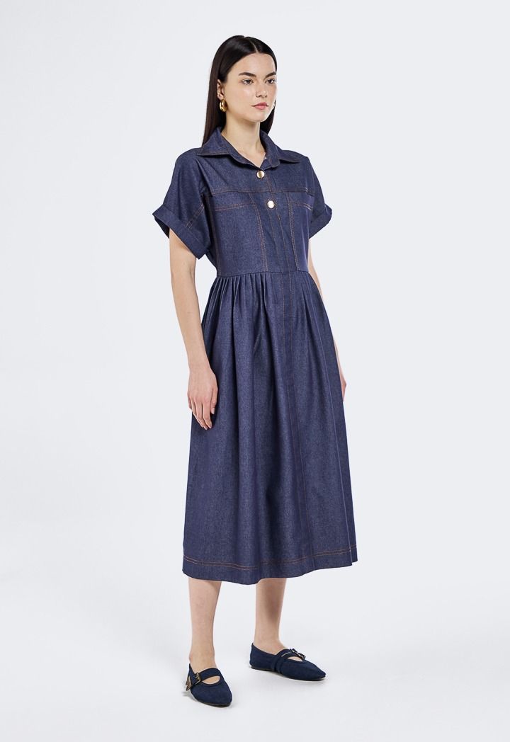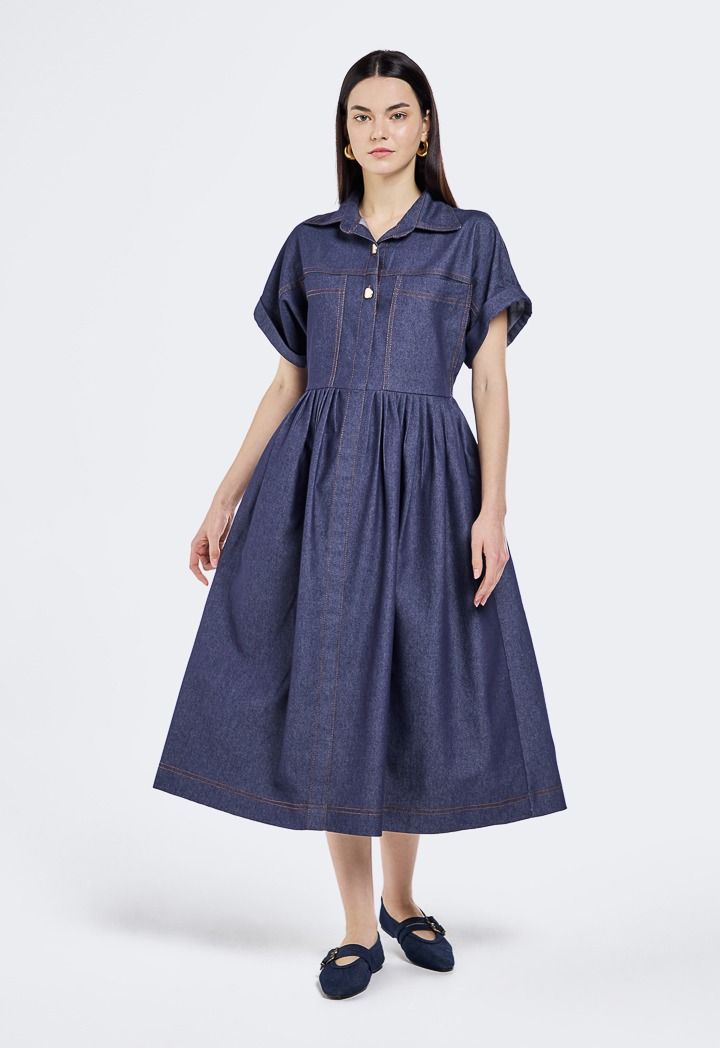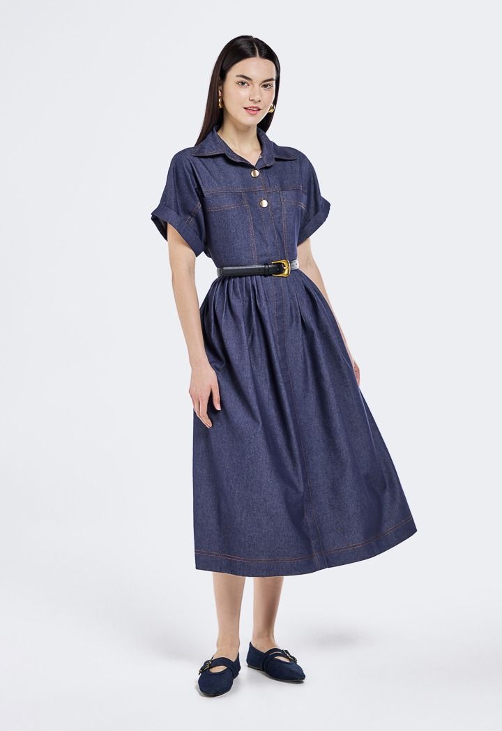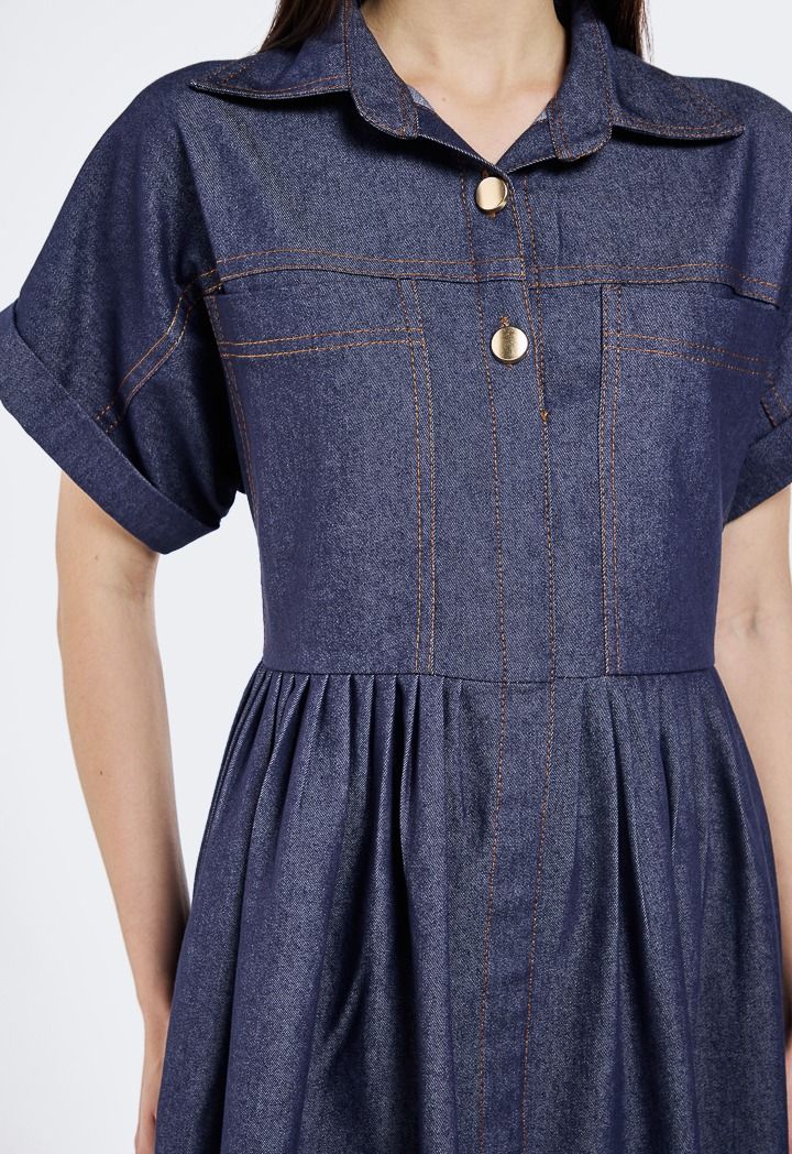 Short Sleeved Denim Dress |