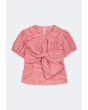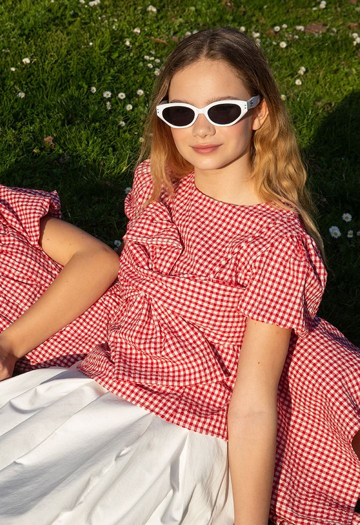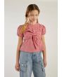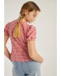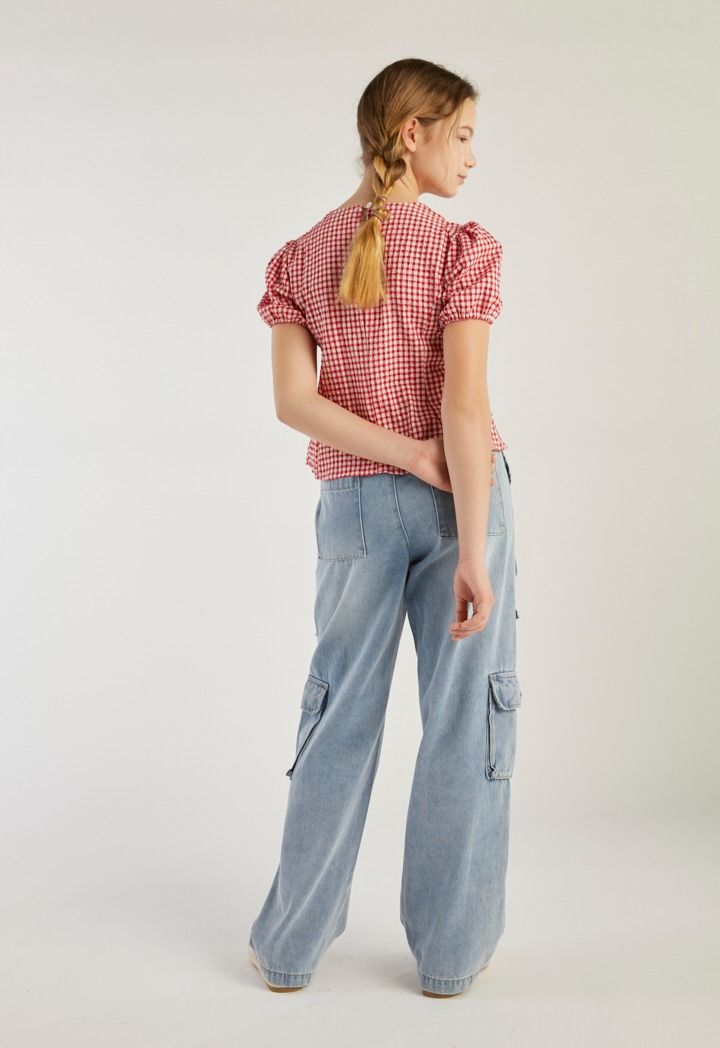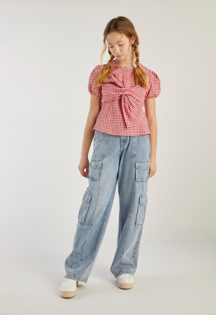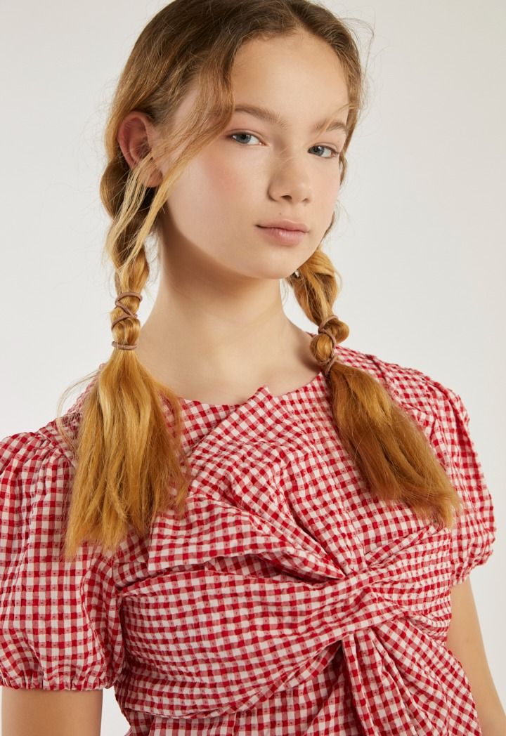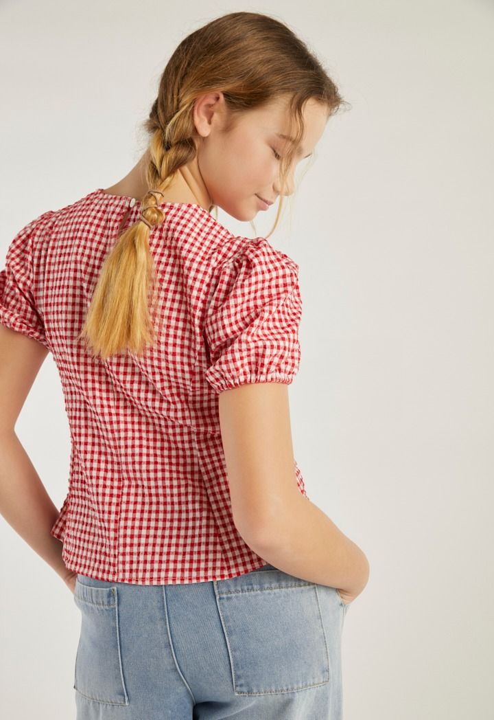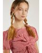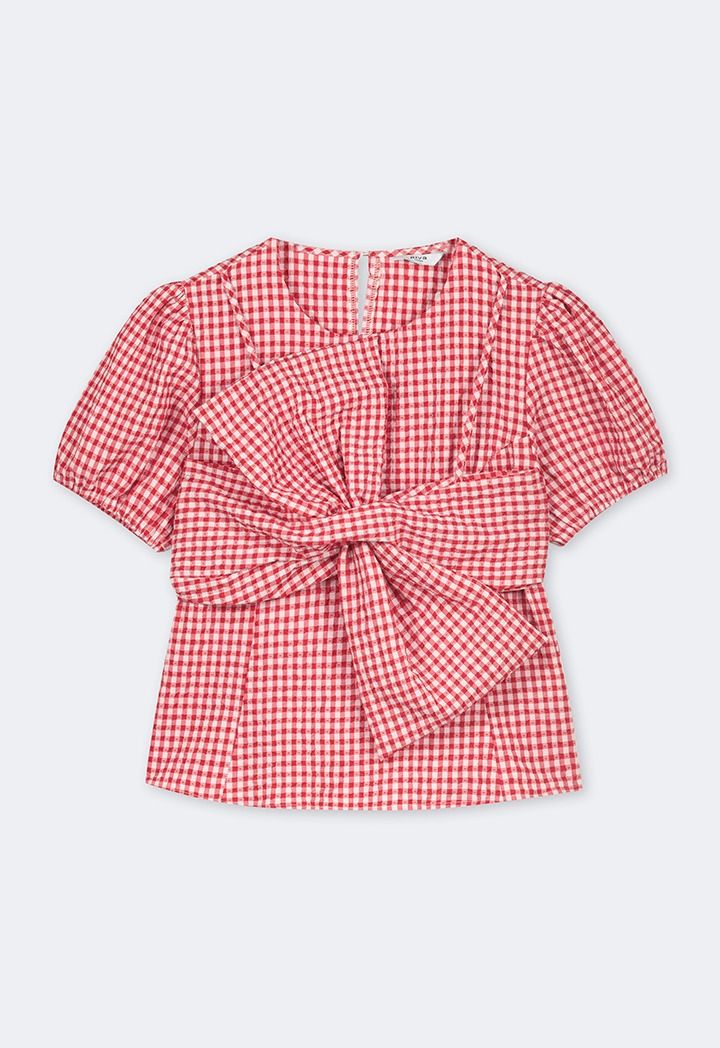 Checkered blouse adorned with a charming bow, adding a touch of femininity and elegance to every detail.