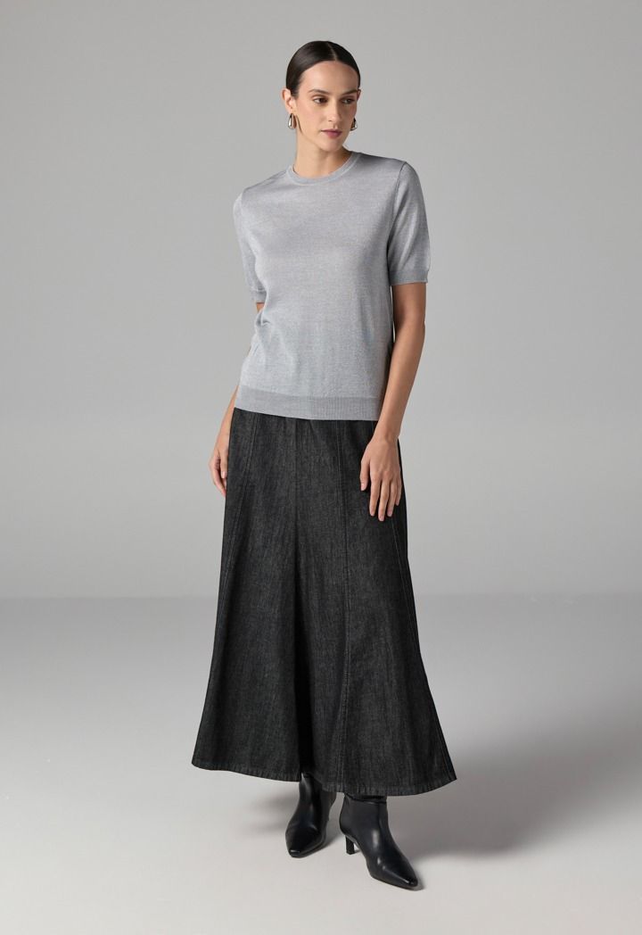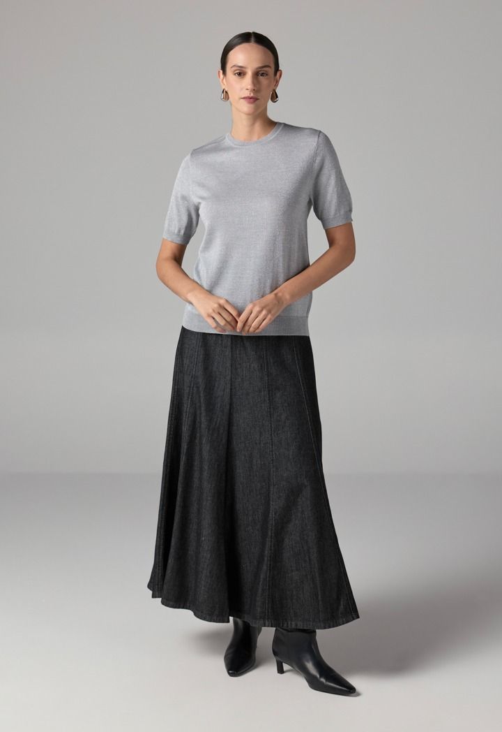 Short Sleeves Knitted Lurex Top |