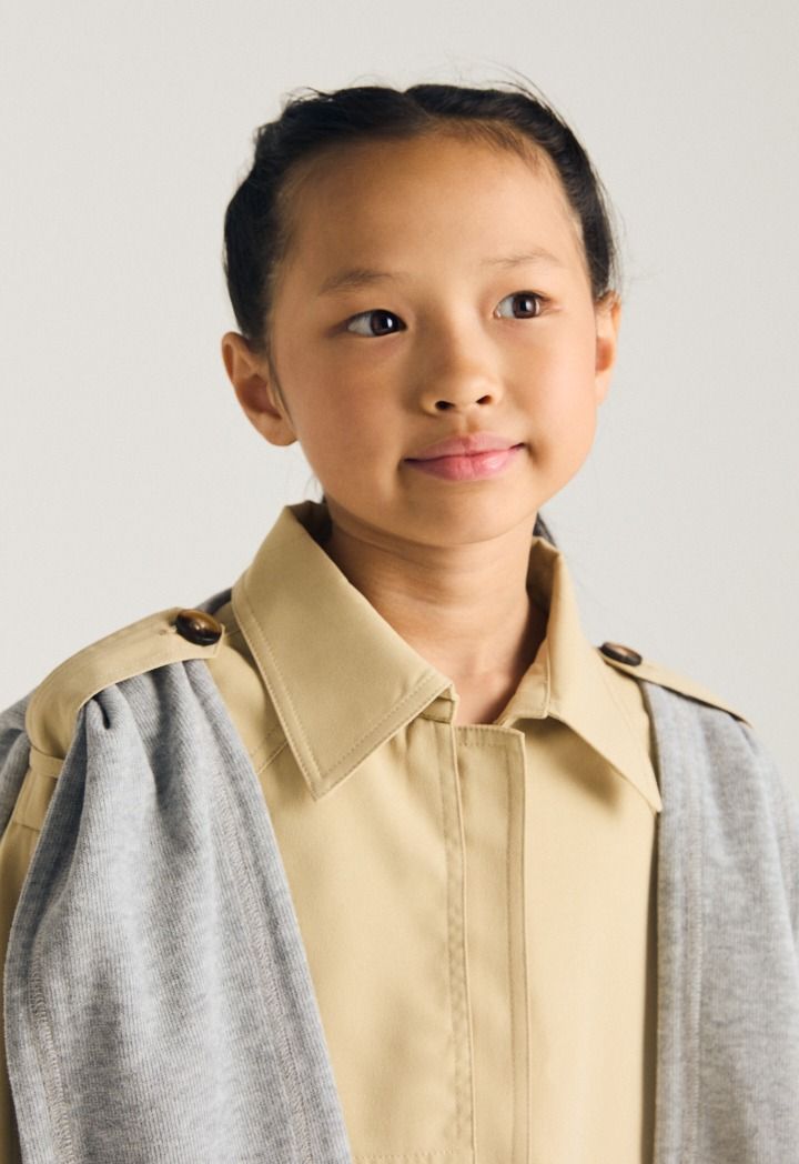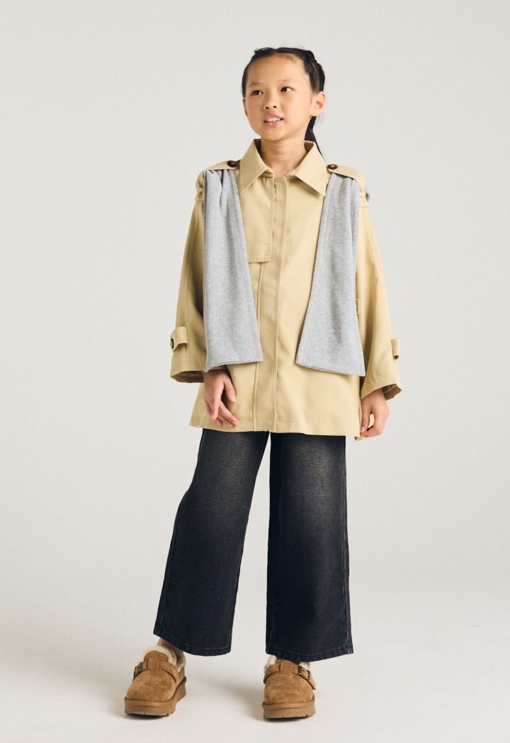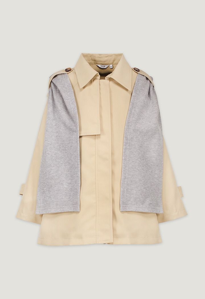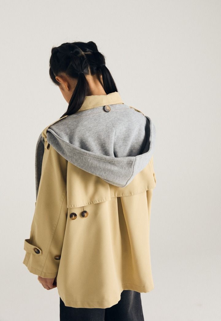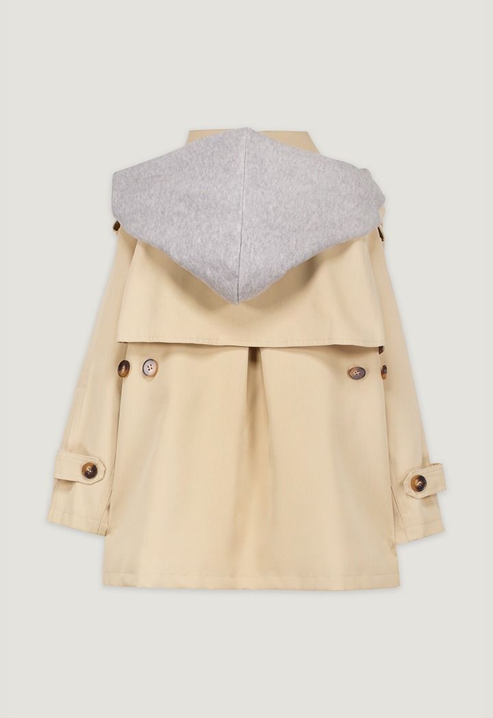 The perfect winter set, featuring a short trench coat and detachable hoodie with sleeves.