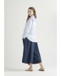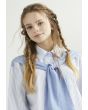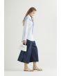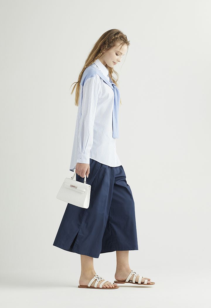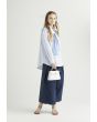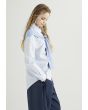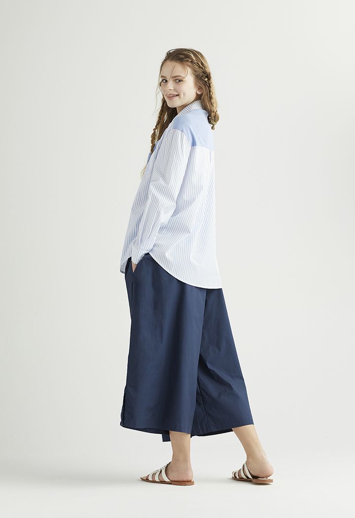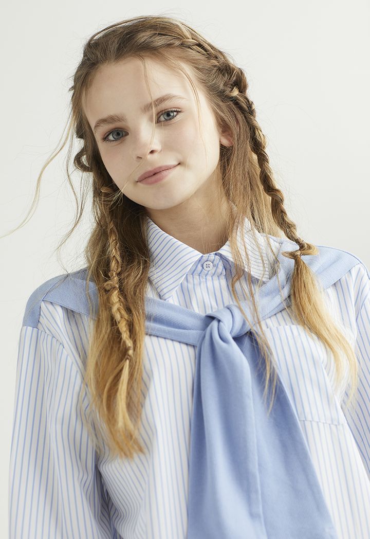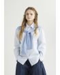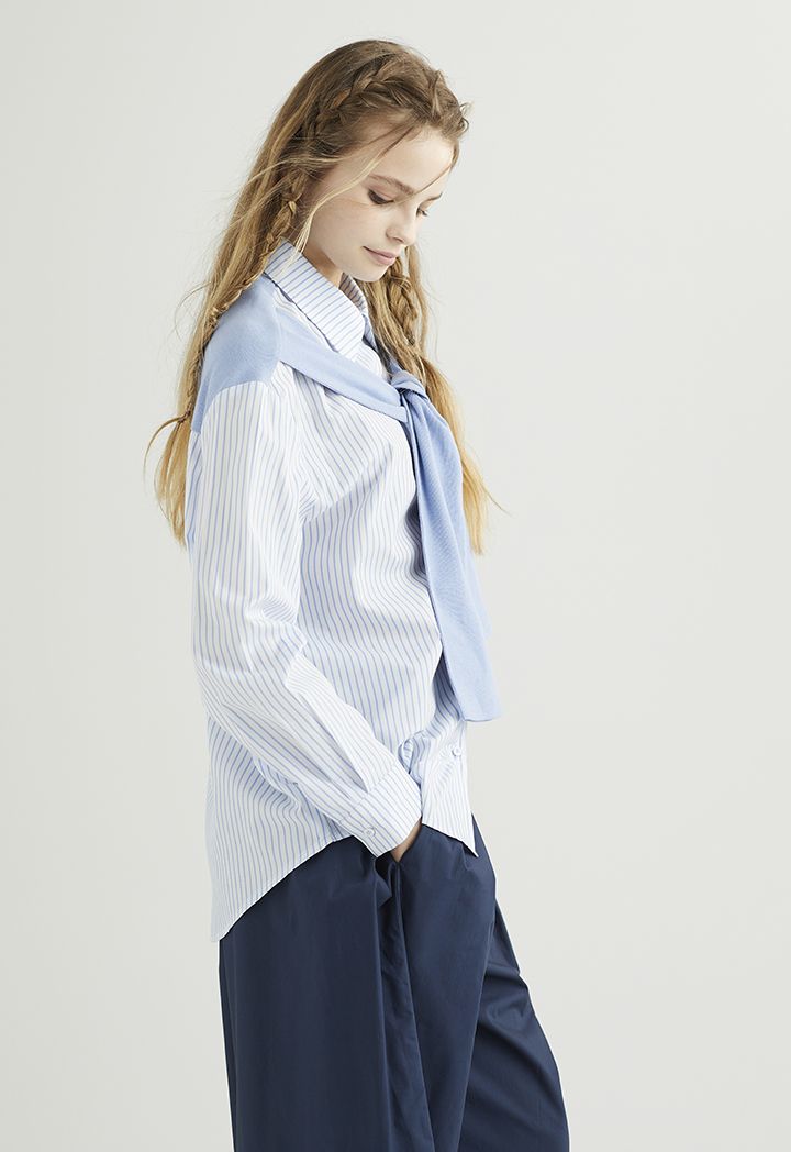 A unique shirt that features a striped design an attached sleeved shoulder.