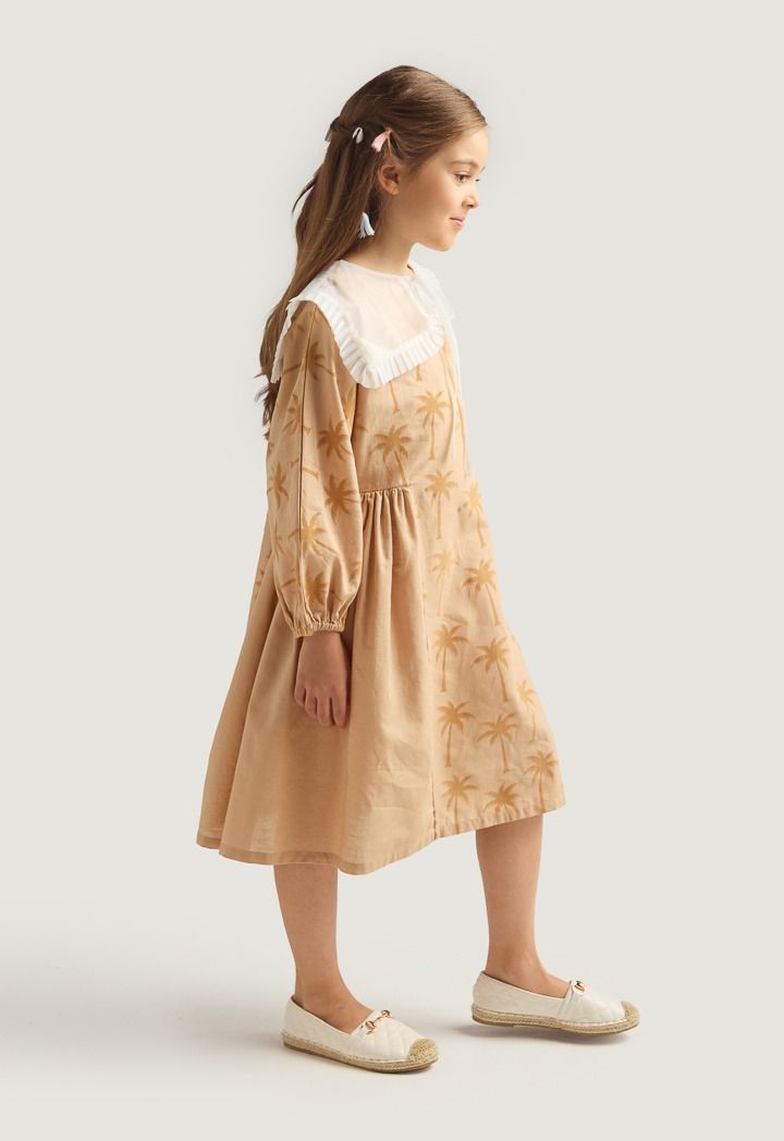 Design: Palm Patterned, Side Pleats, Detachable Pleated Shoulders
