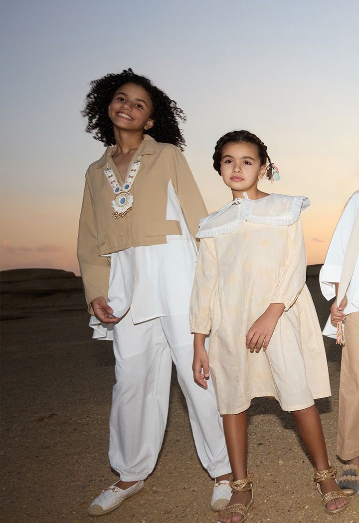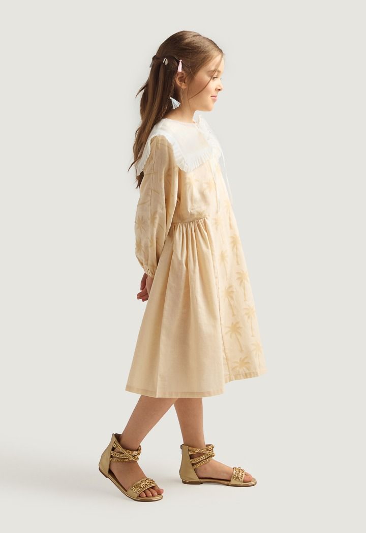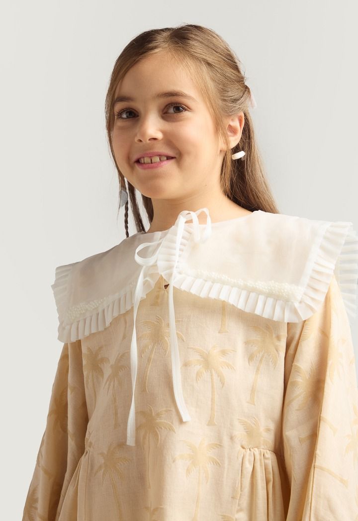 Design: Palm Patterned, Side Pleats, Detachable Pleated Shoulders
